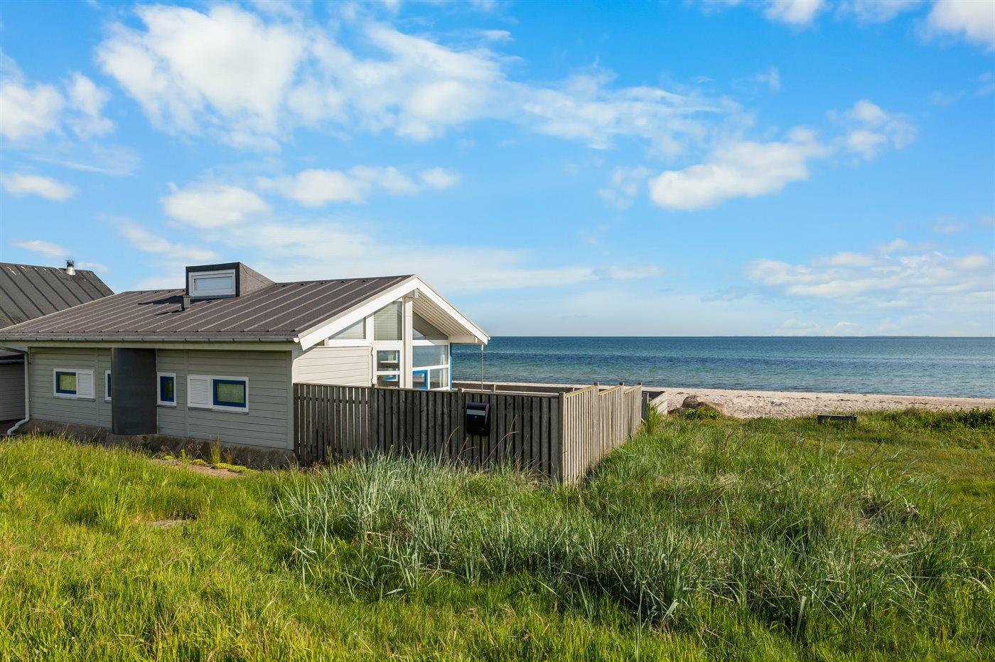 Schönes Ferienhaus direkt am Strand von Tørresø mit Meerblick, Terrasse und Kaminofen für entspannte Urlaubstage.