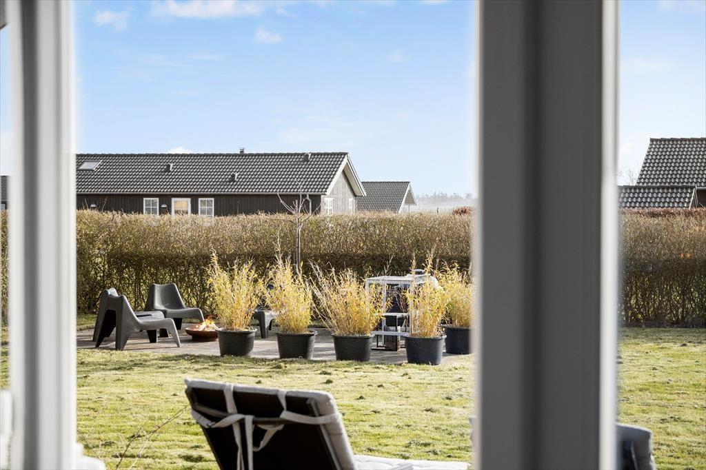 Die große, sonnige Holzterrasse rund um das Haus lädt perfekt zum Entspannen und gemütlichen Beisammensein im Freien ein. Hier kannst du den Morgenkaffee in der Sonne genießen, leckere Mahlzeiten grillen und an warmen Nachmittagen im Schatten ein Nickerchen machen. Der Garten, der an die Terrasse grenzt, ist uneinsehbar und grün, ideal zum Spielen für Kinder oder als friedlicher Ort für Erwachsene, um die Ruhe zu genießen. Du kannst die Vögel singen hören und die frische Brise vom Meer spüren, das nur einen kurzen Spaziergang vom Ferienhaus entfernt liegt. Hier ist Platz für Aktivitäten und Entspannung - vielleicht mit einem guten Buch oder einem Badmintonspiel auf dem Rasen.