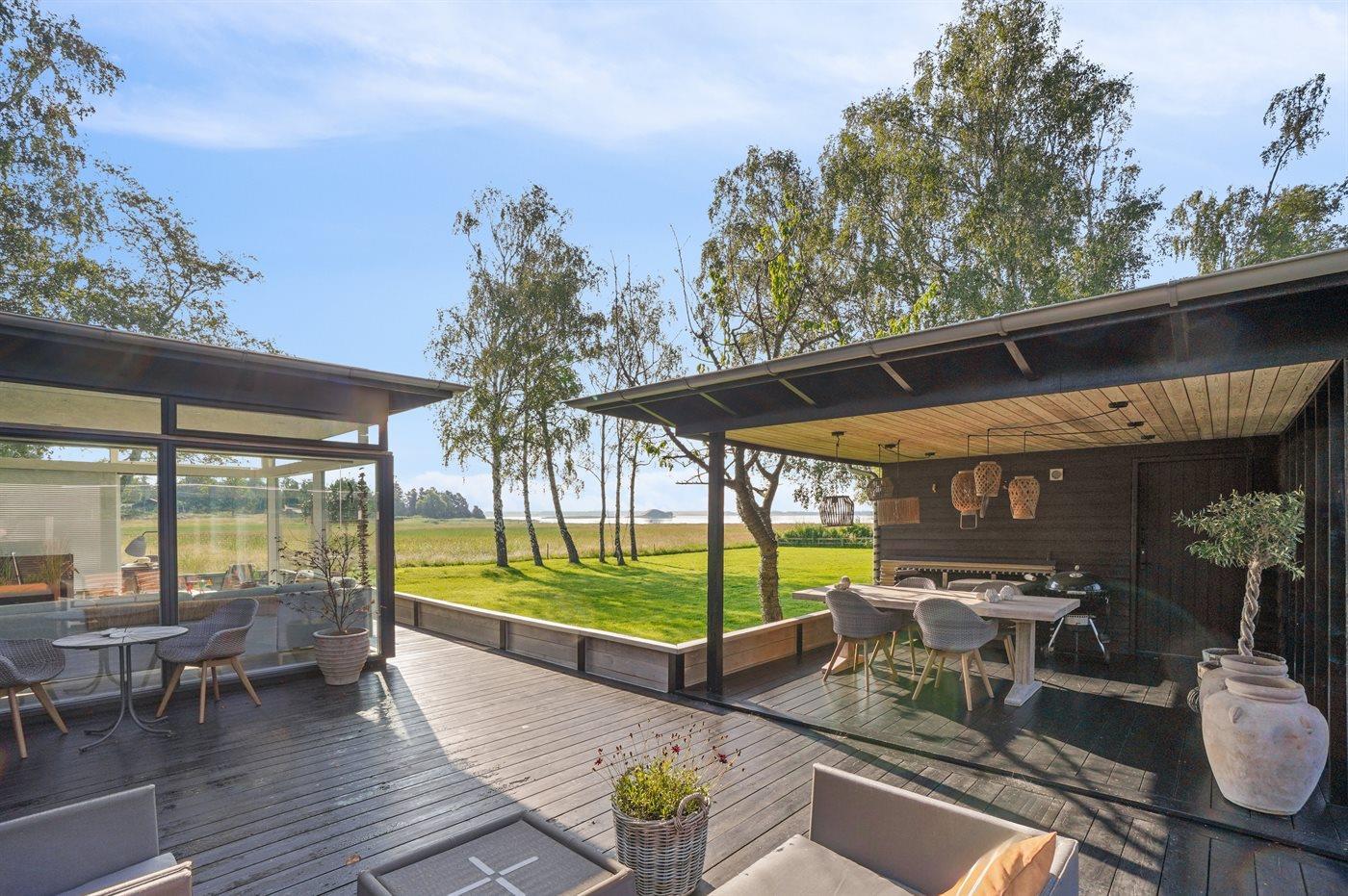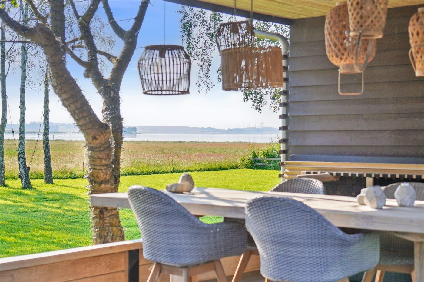 Erleben Sie ein architektonisch gestaltetes Sommerhaus mit atemberaubendem Fjordblick und luxuriösem Wildnisbad in Tørslev Hage, Dänemark.