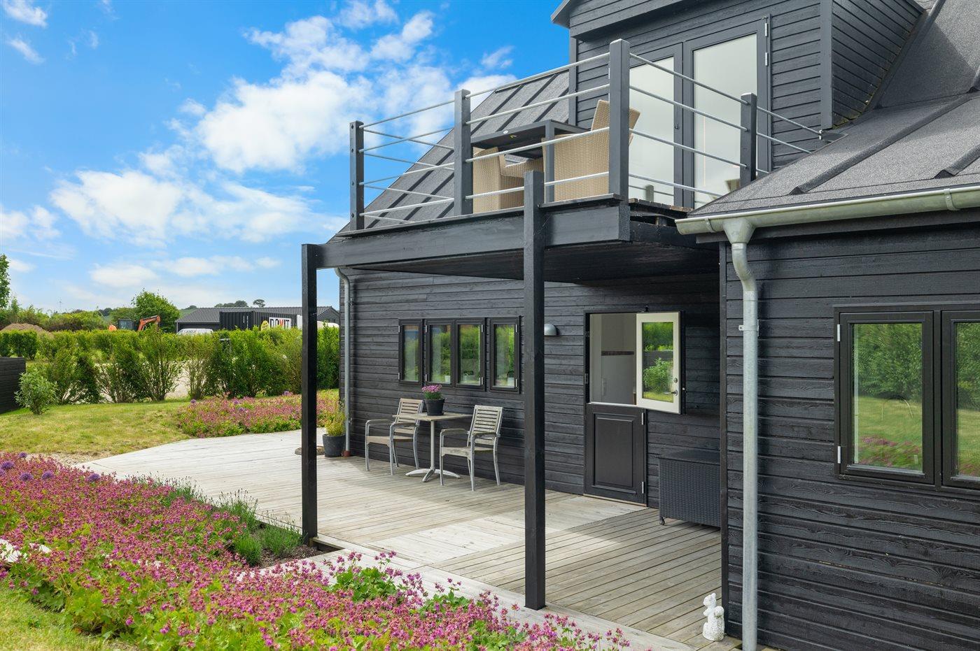 Ein schönes, 2-stöckiges und neu erbautes Ferienhaus mit mehreren guten Terrassen, die sich rund um das Haus verteilen. Das Haus ist hell und geschmackvoll eingerichtet, und vom Obergeschoss sowie vom Balkon aus hast du einen herrlichen Blick über die Umgebung und das Wasser.