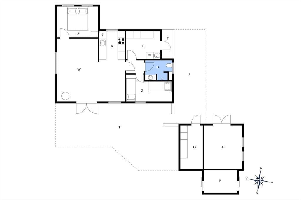Im Inneren des Ferienhauses empfängt Sie eine warme und helle Atmosphäre, die sofort für Ruhe und Urlaubsstimmung sorgt. Das gemütliche Wohnzimmer mit Kaminofen ist der natürliche Treffpunkt für die ganze Familie – ideal für Spieleabende, gemeinsame Mahlzeiten oder einfach zum Entspannen nach einem Tag im Freien. Die offene Küche ist direkt mit dem Essbereich verbunden, sodass das Kochen zum sozialen Erlebnis wird. Vom Esszimmer aus haben Sie direkten Zugang zur großen Terrasse – eine perfekte Verbindung zwischen Innen und Außen. Das Haus verfügt über zwei schöne Schlafzimmer, beide einfach und komfortabel eingerichtet, um Ihnen erholsamen Schlaf zu bieten. Zusätzlich gibt es ein charmantes Gästehaus mit zwei weiteren Schlafplätzen – ideal für Teenager oder Gäste, die etwas mehr Privatsphäre wünschen. Das Badezimmer ist hell und funktional mit Dusche und modernen Annehmlichkeiten – perfekt, um erfrischt in den Tag zu starten.
