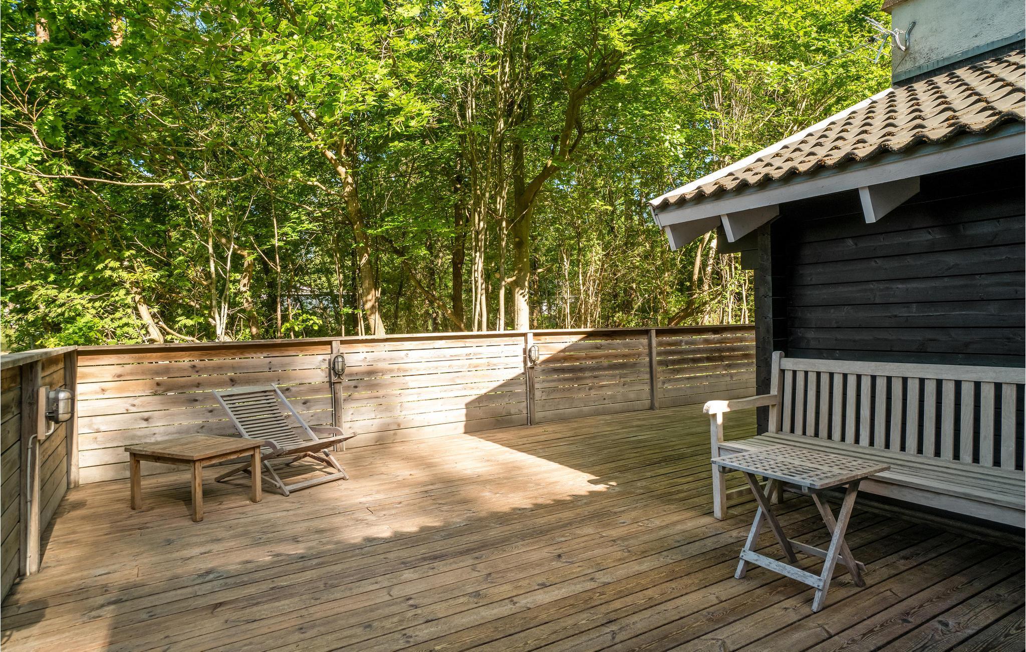 Das Haus umgibt eine große Holzterrasse, die auch das Nebengebäude mit dem Haupthaus verbindet. Kommen Sie hier zum Grillen und Relaxen im Schatten der Bäume zusammen und schmieden Pläne für Ihre anstehenden Urlaubstage. Anschließend können Ihre Kinder im Garten spielen oder Sie versammeln sich um die Feuerschale.