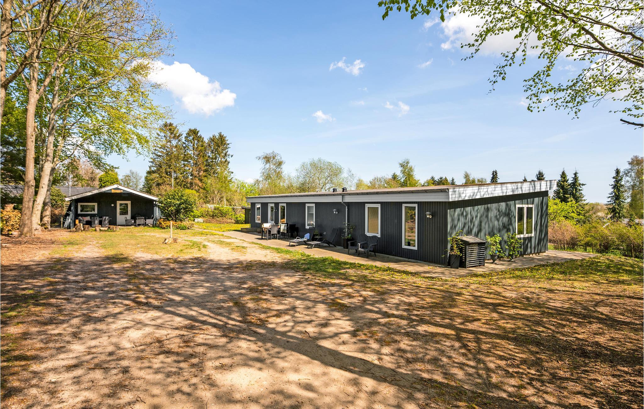 Modernes Ferienhaus mit Pool, Terrasse und eingezäuntem Garten auf Djursland für Familien und Paare.