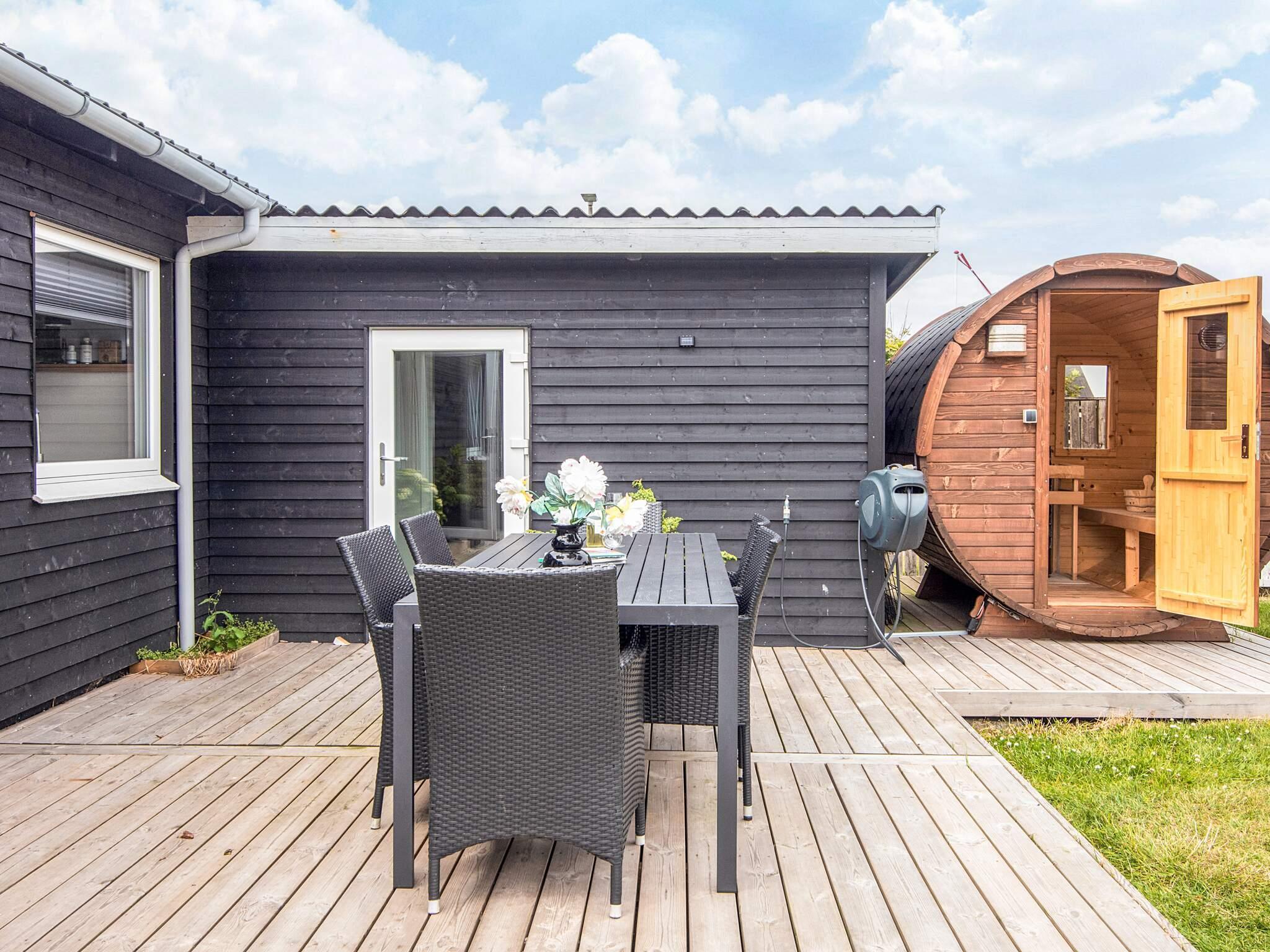 Wohnlich eingerichtetes Ferienhaus mit Whirlpool im Außenbereich. Steht mitten in Thorsminde, sowohl nahe des Hafens als auch unweit Nordsee und Nissum Fjord.