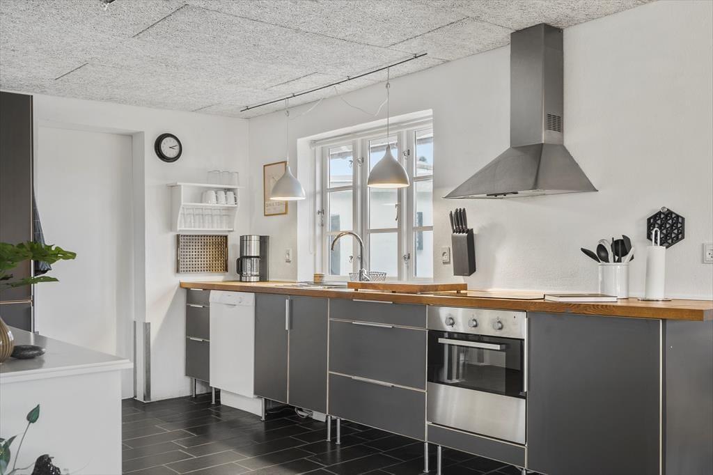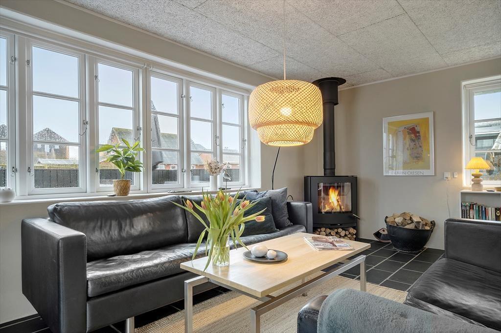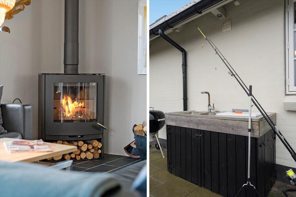 Geschmackvolle Innenarchitektur zeichnet das Haus aus und verleiht ihm eine fantastische Atmosphäre, wenn Sie dieses wunderschöne Sommerhaus betreten. Hier werden Sie von Großzügigkeit und unzähligen Möglichkeiten für Gemütlichkeit und schöne Stunden mit der Familie begrüßt. Hier kann man raumübergreifend miteinander reden, und einige haben die Möglichkeit, ihre Kochkünste unter Beweis zu stellen, während andere am Couchtisch Brettspiele spielen, während draußen die Sonne langsam untergeht, der Raum die Farben der Sonne reflektiert und ihre Farbe verändert. Werfen Sie sich vor den Holzofen und genießen Sie die strahlende Wärme und das gemütliche Knistern, vielleicht mit einem guten Buch in der Hand, oder spielen Sie eine Partie Sqeunce am Esstisch.