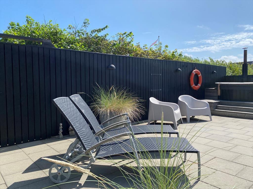 Stehen Sie an einem fantastischen sonnigen Tag auf, gehen Sie auf die schöne Terrasse, setzen Sie sich mit einer Tasse Kaffee in der Hand in die guten Gartenmöbel und beobachten Sie, wie die Sonne langsam aufgeht, während die Vögel in den Tag singen und die frische Nordseeluft Ihre Nase kitzelt. Das eingezäunte Grundstück bietet einen schönen großen Innenhof, der mit dem Garten harmoniert, und ist somit ideal zum sicheren Spielen für die ganze Familie, da Hunde und Kinder frei und sorgenfrei herumlaufen können. In den vielen gemütlichen Ecken kann man in aller Ruhe die Sonnenstrahlen genießen und den größten Teil des Tages Schutz finden. Wenn Sie Abkühlung brauchen, unternehmen Sie einfach einen Ausflug in die Außendusche. Das Haus liegt so nah am Meer, dass man an den meisten Tagen das Meer und das Rauschen der Wellen hören kann. Am Fischputztisch können Sie stehen und Ihren frisch gefangenen Fisch putzen, während Sie sich mit der Familie unterhalten, und im Schuppen, wo es einen extra Gefrierschrank für den Fang gibt, ist dies ebenfalls zu empfehlen Angelausrüstung mitgebracht.