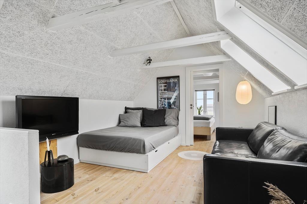 Das Haus liegt in der kleinen Hafenstadt Thorsminde mit einem gemütlichen Hafenviertel. Wenn Sie gerne angeln, ist der Ort perfekt. Hier besteht die Möglichkeit sowohl zum Meeres- als auch zum Fjordangeln. Der Badestrand ist zu Fuß erreichbar, ohne die Dünen überqueren zu müssen und mit festem Untergrund unter den Füßen. In den Sommermonaten ist an einem der Badeplätze eine Rettungsleine aufgebaut. Im Ort gibt es unter anderem ein Lebensmittelgeschäft, das Strandingsmuseet St. George mit Aussichtsturm, Thorsminde Outdoor und Nørgaard Fisk & Røgeri. Das Haus ist auch nicht weit von einem großen öffentlichen Spielplatz mit Fitnessgeräten entfernt und Thorsminde Camping bietet verschiedene Wasseraktivitäten. In Husby Klitplantage gibt es markierte Rad- und Wanderwege, einen Badesee und den Aussichtspunkt „Marens Schlund“. Wenn Sie auf der Suche nach Unterhaltung in Form von Vergnügungsparks, Museen, Kunsthandwerksläden oder Lalandia sind, dann können Sie einen Großteil davon mit dem Auto im Umkreis von 40 km erreichen.