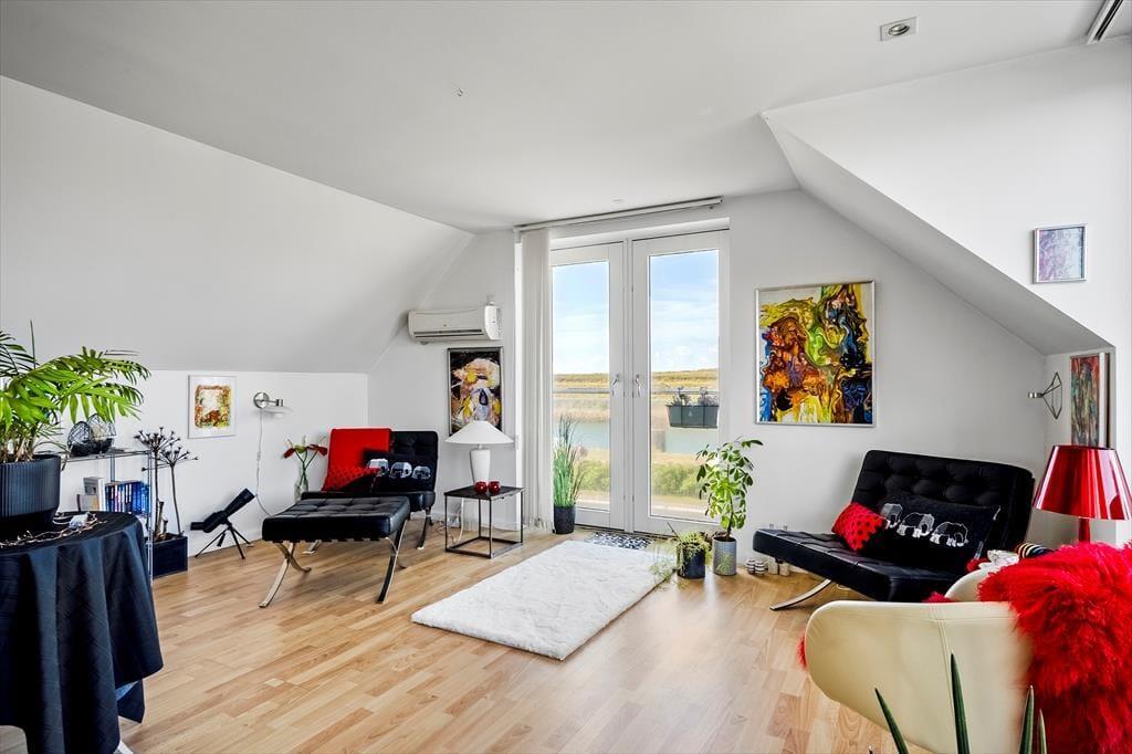 In Thorsminde erwartet Sie dieses wunderschöne Ferienhaus, in dem Geräumigkeit und Helligkeit den perfekten Rahmen für einen entspannten Urlaub bieten. Schon beim Betreten spürt man die gemütliche Atmosphäre, die zu Ruhe und Geborgenheit einlädt. Vom Sofa im Obergeschoss genießen Sie den atemberaubenden Blick auf die Nordsee, während der Wohnbereich im Erdgeschoss zu gemeinsamen Stunden, Spielen und guten Gesprächen einlädt. Mit einem Kaminofen auf beiden Etagen finden Sie jederzeit einen warmen Platz zum Zurückziehen – vielleicht mit einem guten Buch, einer Tasse Kaffee oder einfach nur, um den Blick bei den tanzenden Flammen zur Ruhe kommen zu lassen.