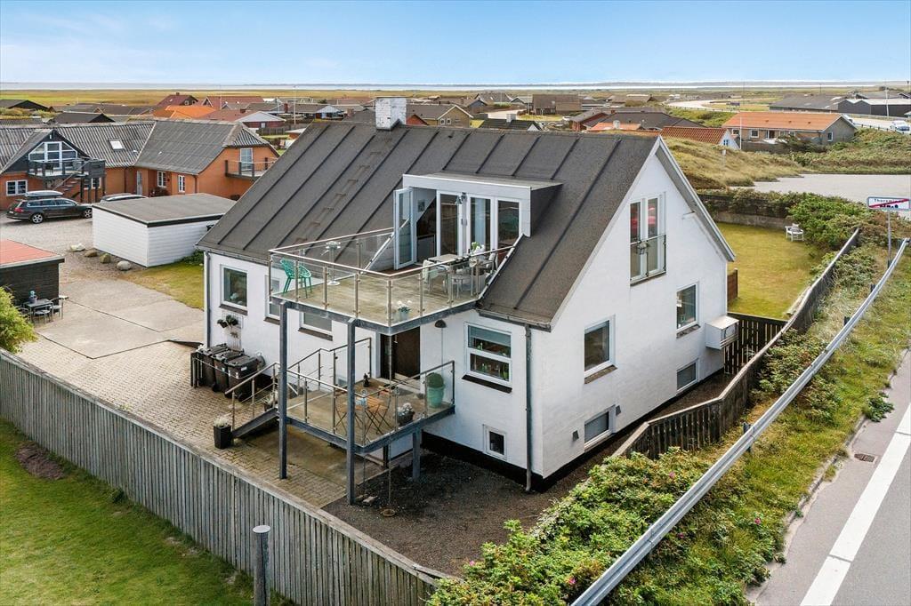 Das Haus verfügt über einen schönen Balkon, von dem aus Sie den Panoramablick auf Fjord und Meer genießen können. Hier ist es ideal, den Tag mit einer Tasse Kaffee im kleinen Cafésitz oder am Abend mit einem Glas Wein zu beenden, während die Sonne hinter den Dünen untergeht. Der Balkon schenkt Ihnen ein kleines privates Refugium unter freiem Himmel, wo Sie die wechselnden Stimmungen der Natur hautnah erleben können.