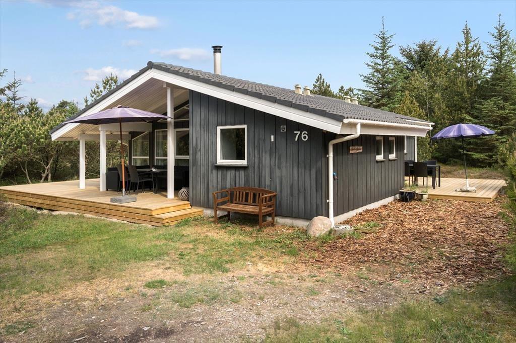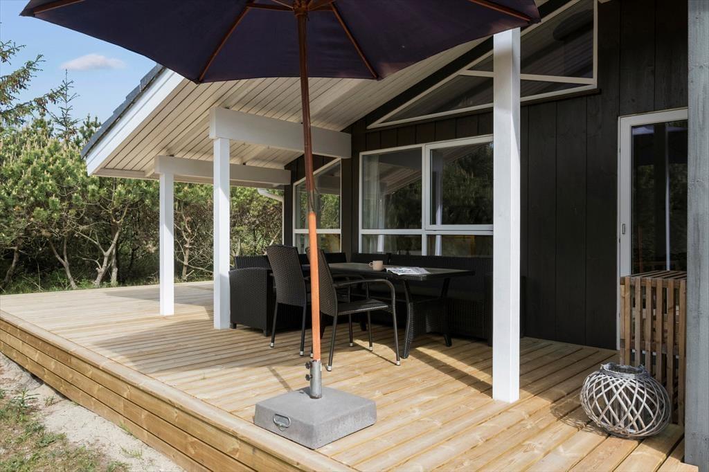 Das 1260 m2 große Grundstück des Ferienhauses wird in schönster Weise von Fichten und Heidekraut eingerahmt, so dass die Entspannung auf der Terrasse und Spiele auf der Rasenfläche in herrlichem und friedlichem Rahmen von statten gehen können. Am Ferienhaus gibt es zwei Terrassen mit sowohl offenen wie auch überdachten Teilen, so dass Sie frei wählen können zwischen Sonne und Schatten, bevor Sie es sich in den Gartenstühlen bequem machen oder den Grill anzünden.