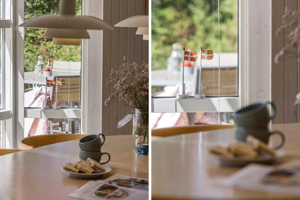 Sobald du das Haus betrittst, spürst du eine klassische und einladende Sommerhaus-Atmosphäre, die es leicht macht, zur Ruhe zu kommen. Im Wohnzimmer, geprägt von hellen Holzverkleidungen und einer hohen Decke, kannst du gemütliche Abende vor dem Kamin verbringen. Die Küche ist offen und mit dem Wohnraum verbunden, sodass du die Urlaubsmahlzeiten zubereiten kannst, während die Gespräche durch den Raum fließen. Wenn der Tag sich dem Ende zuneigt, bieten drei gemütliche Schlafzimmer einen Platz für eine erholsame Nachtruhe. Außerdem gibt es ein Badezimmer und ein Gäste-WC – ein praktischer Vorteil für Familien oder Gruppen, die zusammen Urlaub machen.