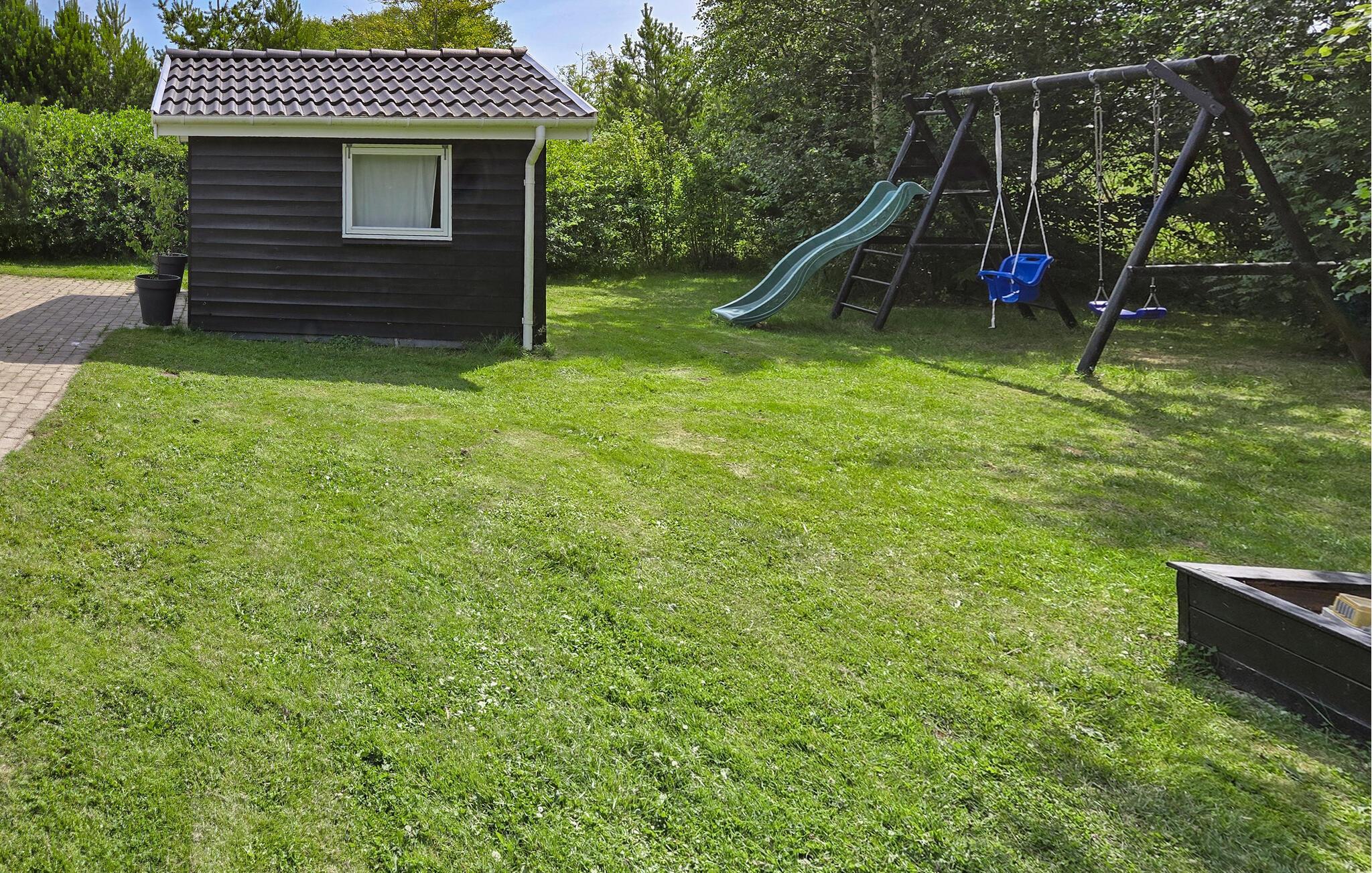 Genießen Sie draußen die frische Meeresluft auf der großen Holzterrasse, während Ihre Kinder sich im Sandkasten, auf der Schaukel oder der Rutsche austoben.