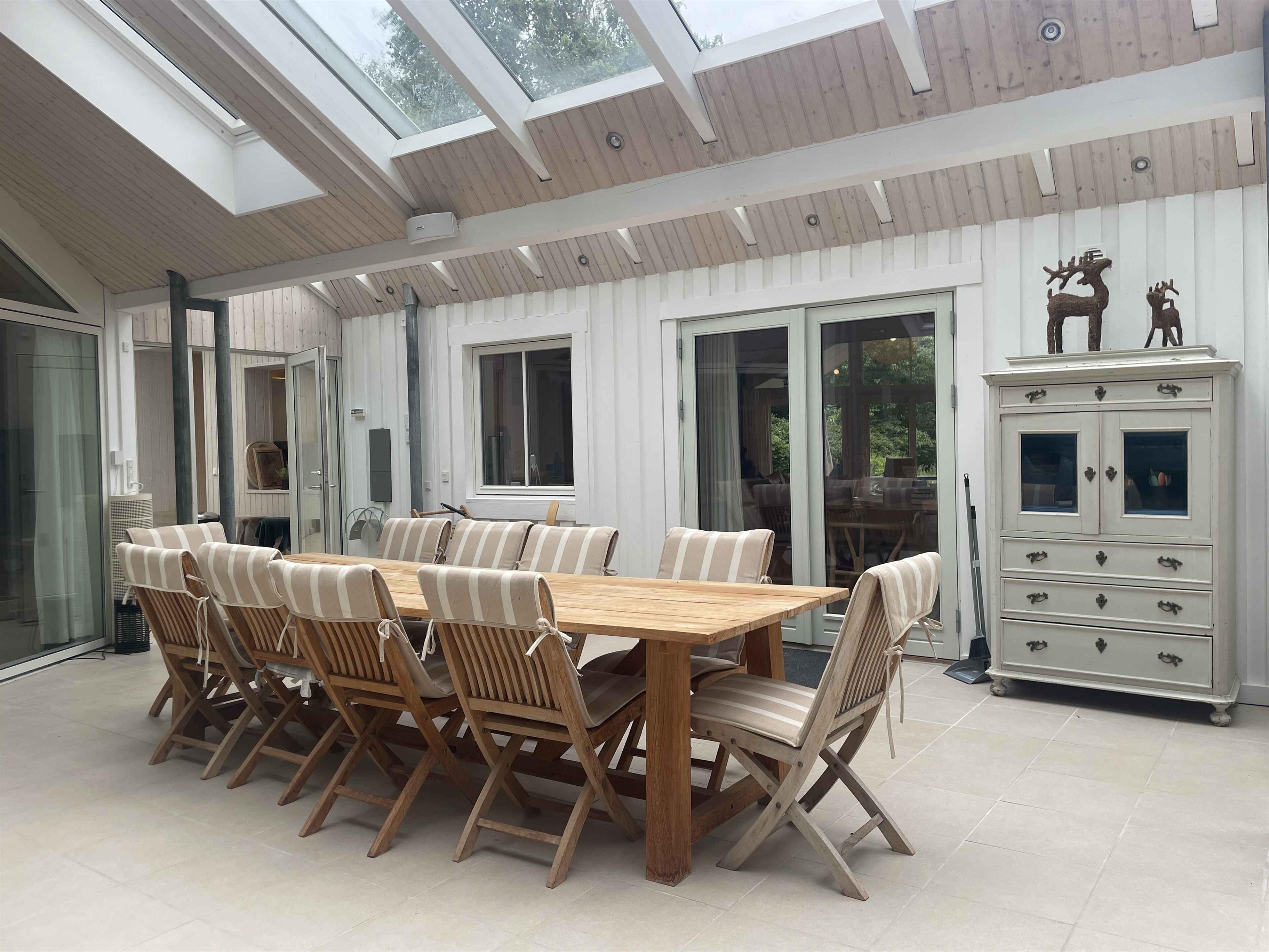 Ein schönes, geräumiges Ferienhaus mit Platz für Gemeinschaft und Entspannung. Die 300 m² umfassen sechs separate Schlafzimmer mit insgesamt sechs Schlafplätzen – ideal für zwei Familien, die gemeinsam reisen. Hier stehen Ruhe, Gemütlichkeit und Zusammensein im Mittelpunkt – ohne Bildschirme und Elektronik. Das Haus liegt in einer ruhigen Umgebung mit viel Platz drinnen und draußen. Die große Terrasse, der Grillplatz und der gepflegte Garten laden zu Aktivitäten im Freien und langen Sommerabenden ein. Ein großzügiger Wintergarten verlängert den Tag, auch bei wechselhaftem Wetter. Innen ist das Haus komplett möbliert mit allem, was man braucht. Ein großer Esstisch bringt alle zu den Mahlzeiten zusammen, und Sofas und Liegestühle bieten Platz zum Entspannen. Es gibt ein TV-Zimmer, WLAN und klassische Brettspiele für ruhige Abende. Die Umgebung bietet vielfältige Naturerlebnisse. In der Nähe befinden sich Wälder, Wanderwege und ein See, ideal für Spaziergänge und Pausen mit Aussicht. Die Küste ist nur 6 km entfernt – mit schönen Stränden und kleinen Orten, ideal für einen Tagesausflug oder ein Eis in der Sonne. Ein perfekter Ort, um das Tempo zu drosseln und gemeinsam Zeit zu verbringen. Ob Sie die Natur erkunden oder einfach zu Hause entspannen möchten – Haus und Umgebung bieten den idealen Rahmen für einen erholsamen und bereichernden Urlaub. Achtung: Wird nicht für gewerbliche Nutzung vermietet.