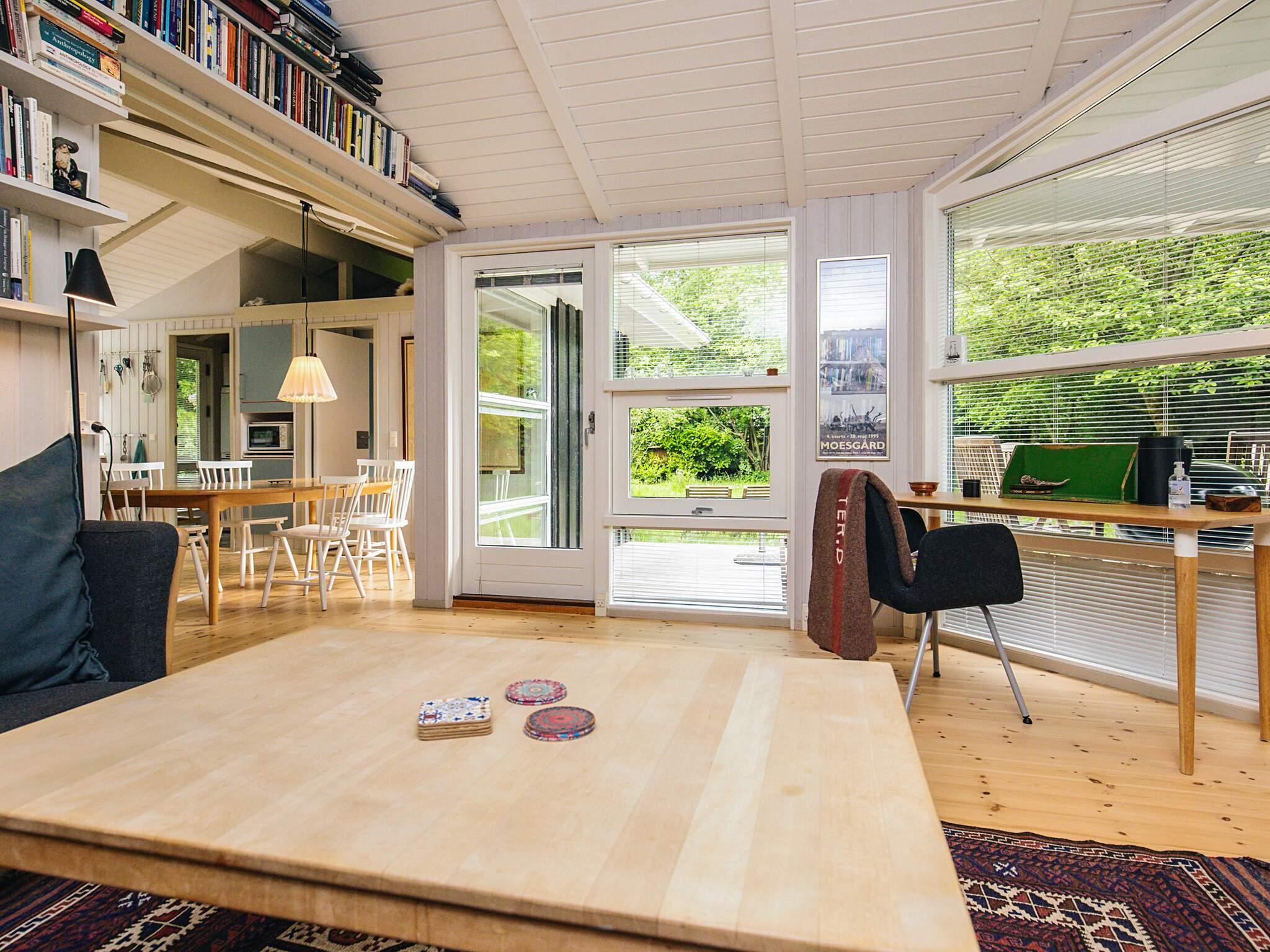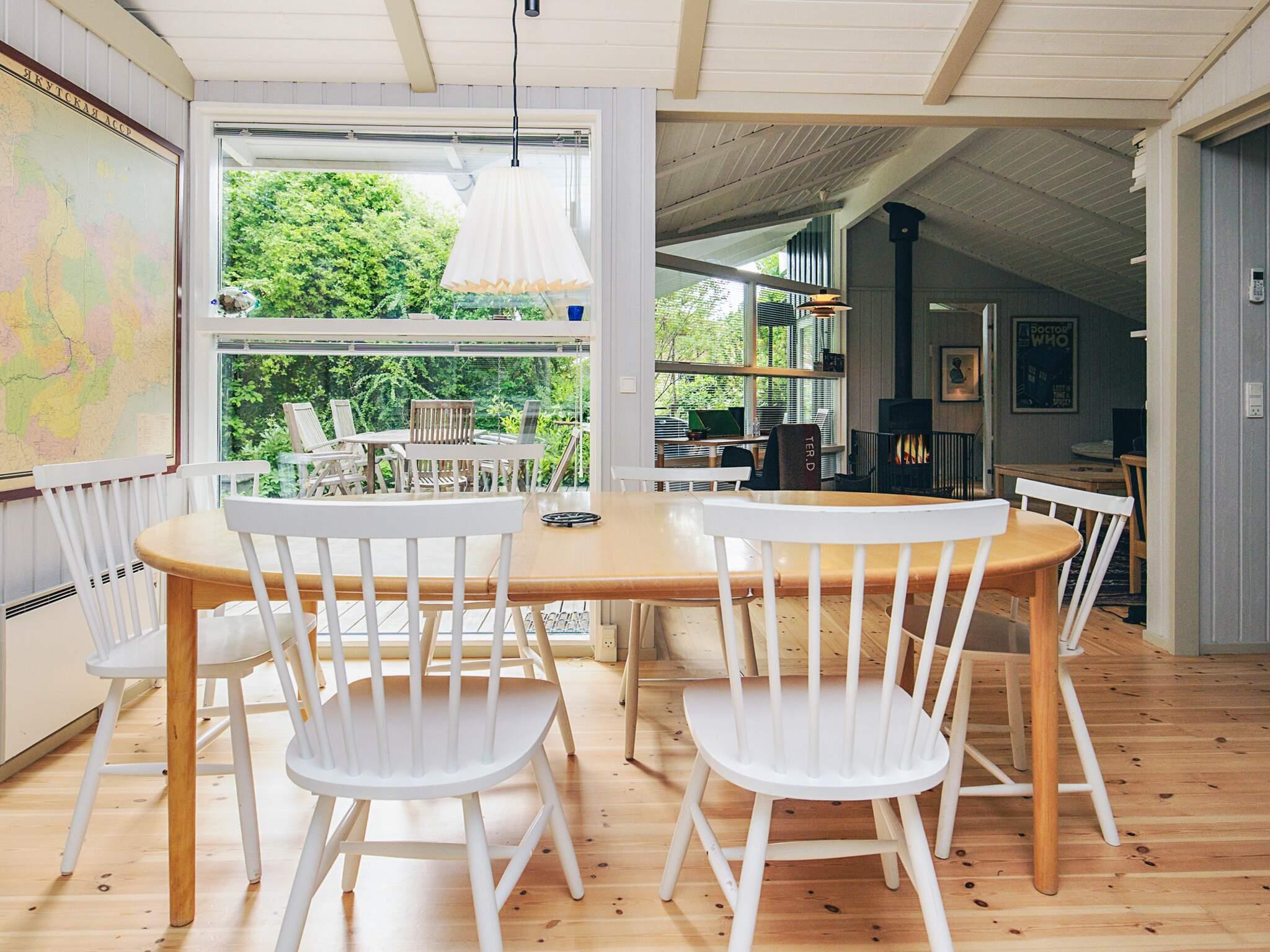 Das Ferienhaus hat einen offenen Küche-/Wohnbereich für das Familienleben. Gute Küchenausstattung mit u.a. Ceranfeld, Dunstabzugshaube, Mikrowelle und Geschirrspüler. Im praktischen Hauswirtschaftsraum stehen zudem Waschmaschine und Wäschetrockner bereit. Im gemütlichen Wohnbereich findet man Holzofen, freies WLAN sowie TV mit Chromecast und DVD-Player vor. Vom Wohnbereich aus haben Sie Zugang zu einer überdachten Terrassenfläche mit Gartenmöbeln.