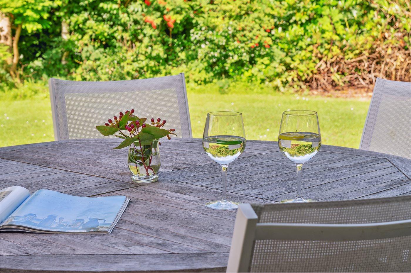 Die Ferienunterkunft liegt auf einem 1282 m² großen Gartengrundstück. Die Entfernung zum Meer beträgt 350 m. Die nächste Einkaufsmöglichkeit liegt 1700 m entfernt. Es steht ein 33 m² Terrassenareal zur Verfügung. Außerdem gibt es 19 m² überdachte Terrasse. Geräteraum. Es steht ein Carport zur Verfügung. Parkplatz auf dem Grundstück.