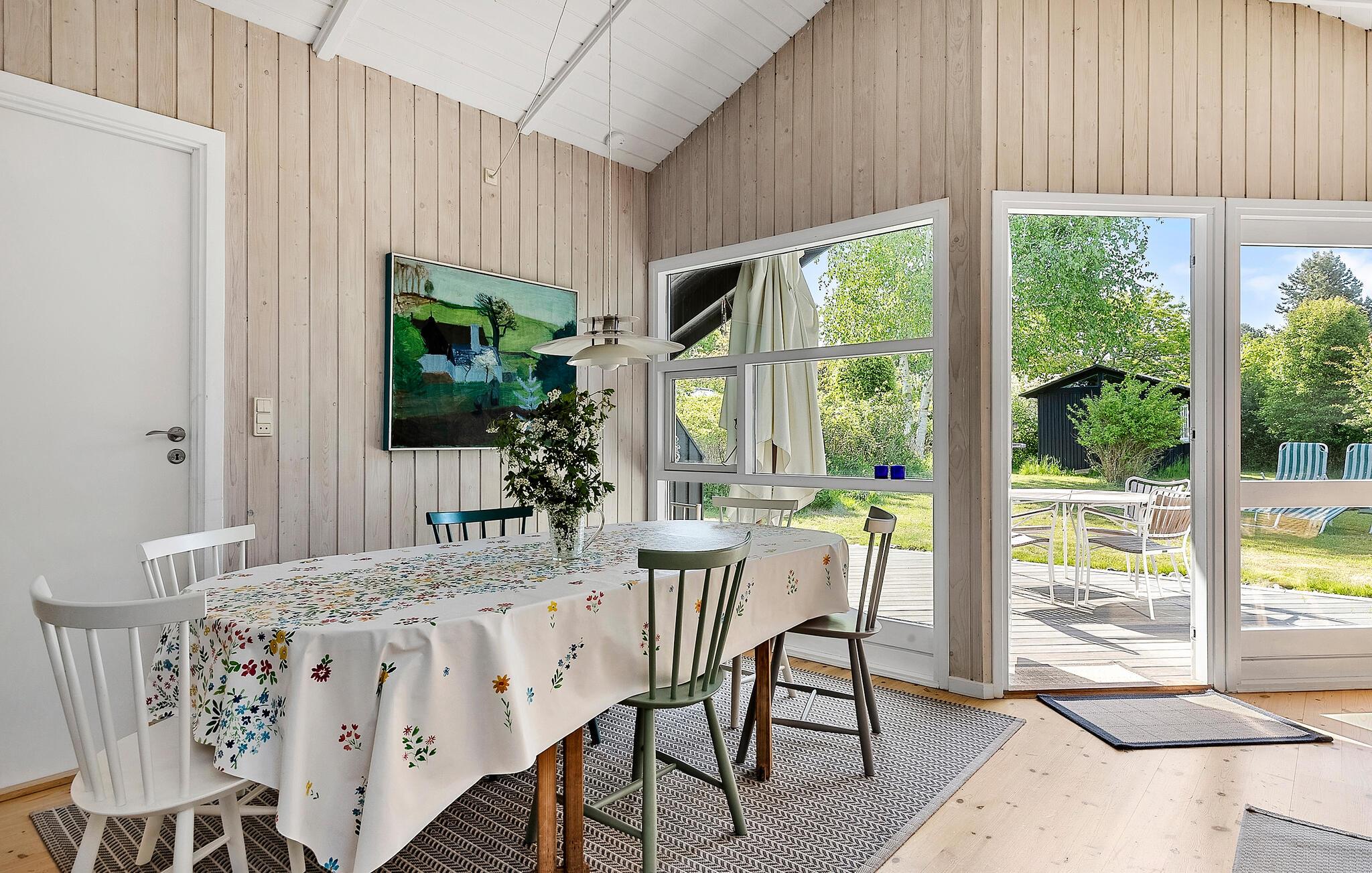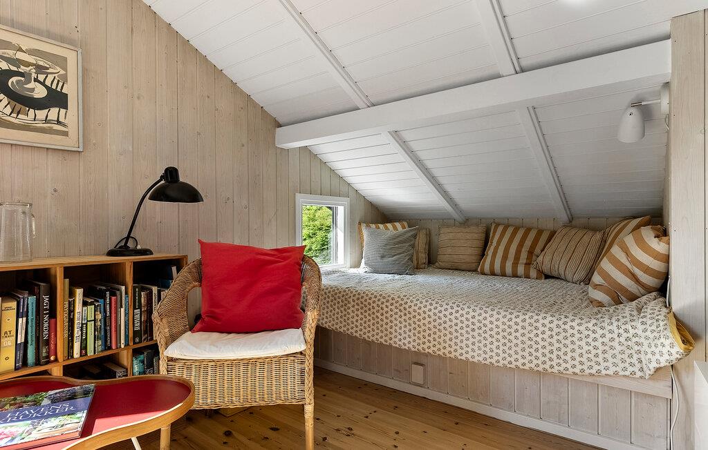Nur einen kurzen Spaziergang vom Strand entfernt und eingebettet in ein lauschiges Naturgrundstück, erwartet Sie in diesem Urlaubsdomizil mit Haupthaus und Gästehaus eine harmonische Auszeit mit Freunden oder der Familie. Hier heißt Sie ein gemütlicher, heller Wohnbereich willkommen, der zum Spielen, Speisen und Entspannen einlädt, während der Kaminofen leise knistert. Freuen Sie sich auf gemeinsame Mahlzeiten mit Blick ins Grüne und kuschelige Abende auf dem Sofa.