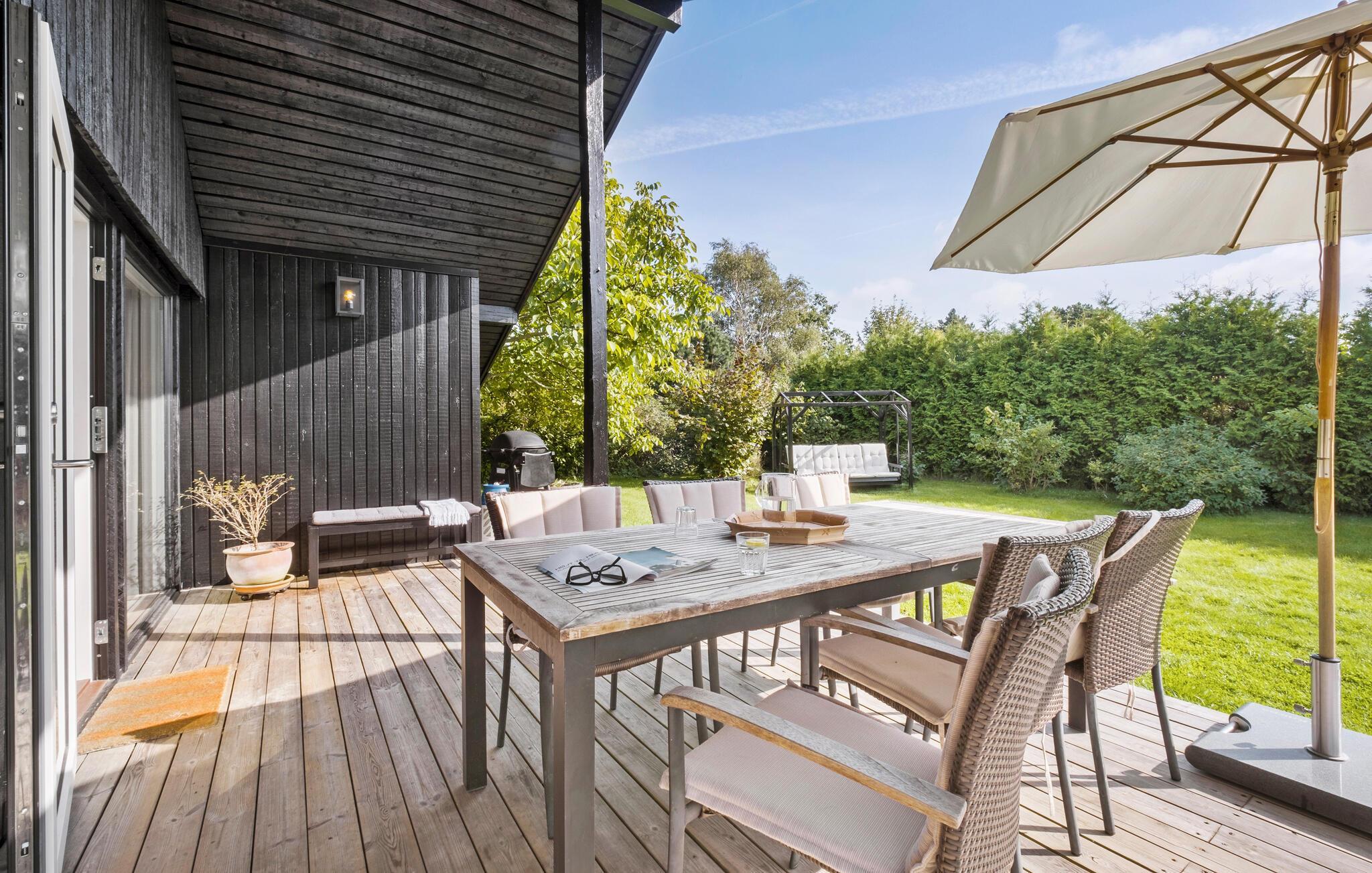 Die beiden Häuser sind durch die Terrasse verbunden. Genießen Sie hier lange Sommertage und Leckereien vom Grill, während Ihre Kinder ausgelassen spielen.