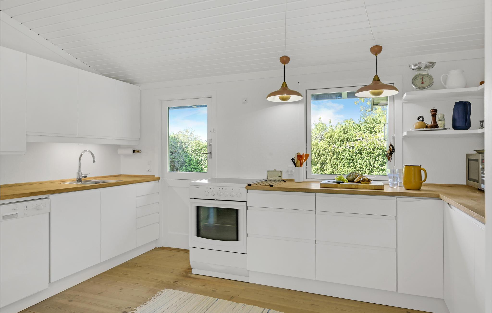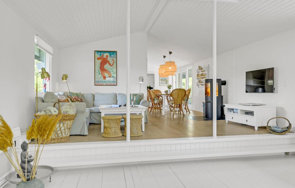 Das Herz des Hauses ist der schöne und helle Wohnbereich mit offener Küche, Ess- und Sofaecke, wo Sie mit Familie oder Freunden gesellige Momente bei Filmabenden, mit einem prasselnden Feuer im Kamin oder beim Essen verbringen können.