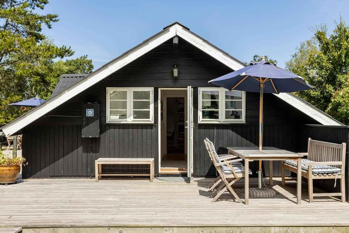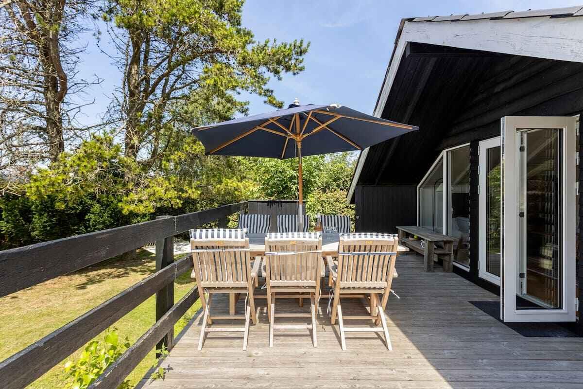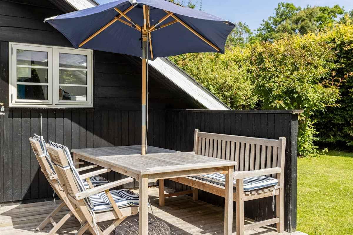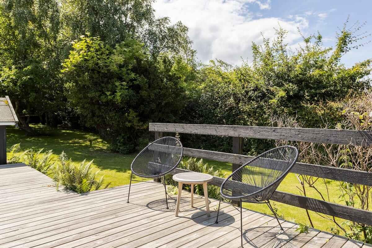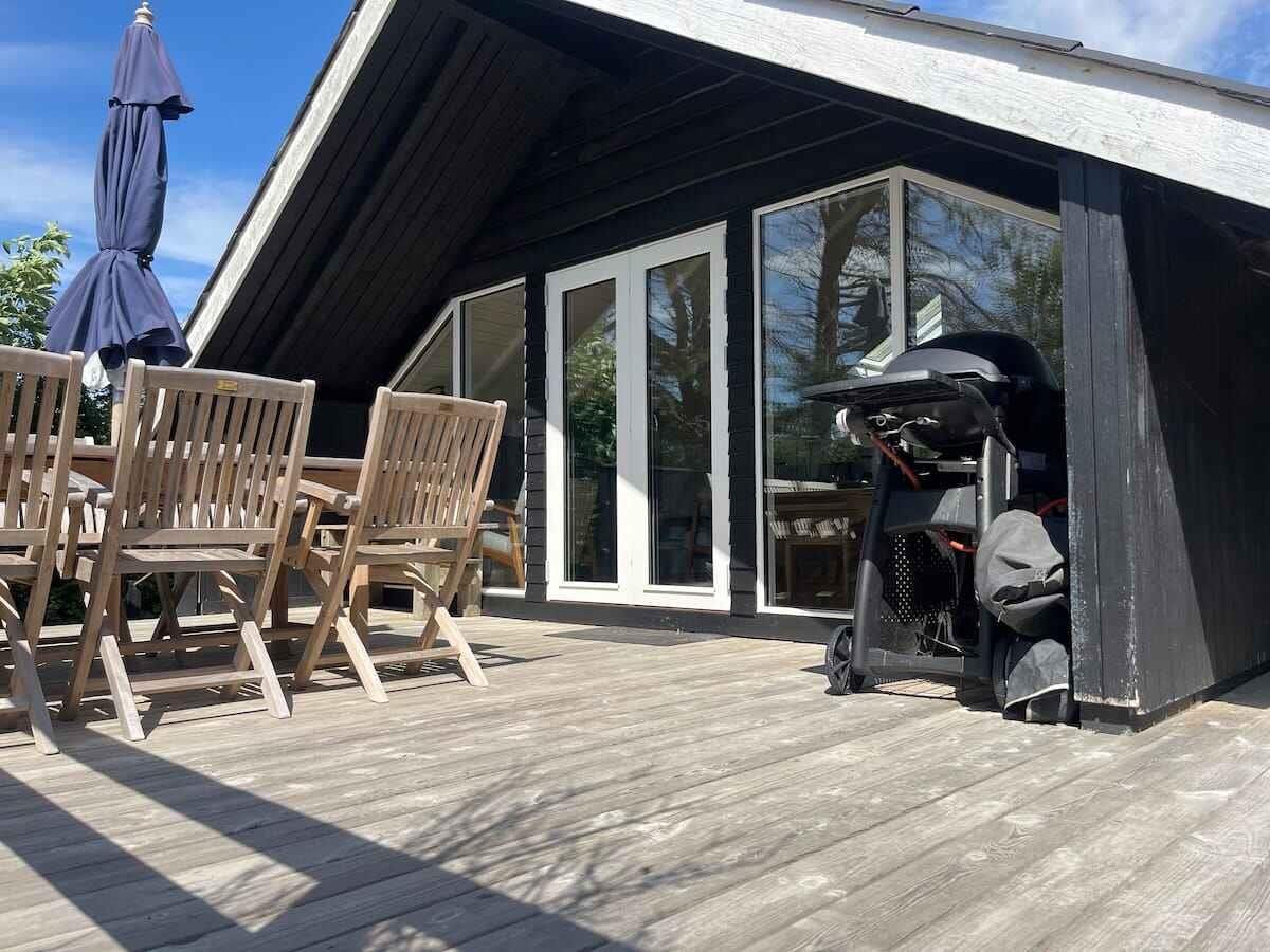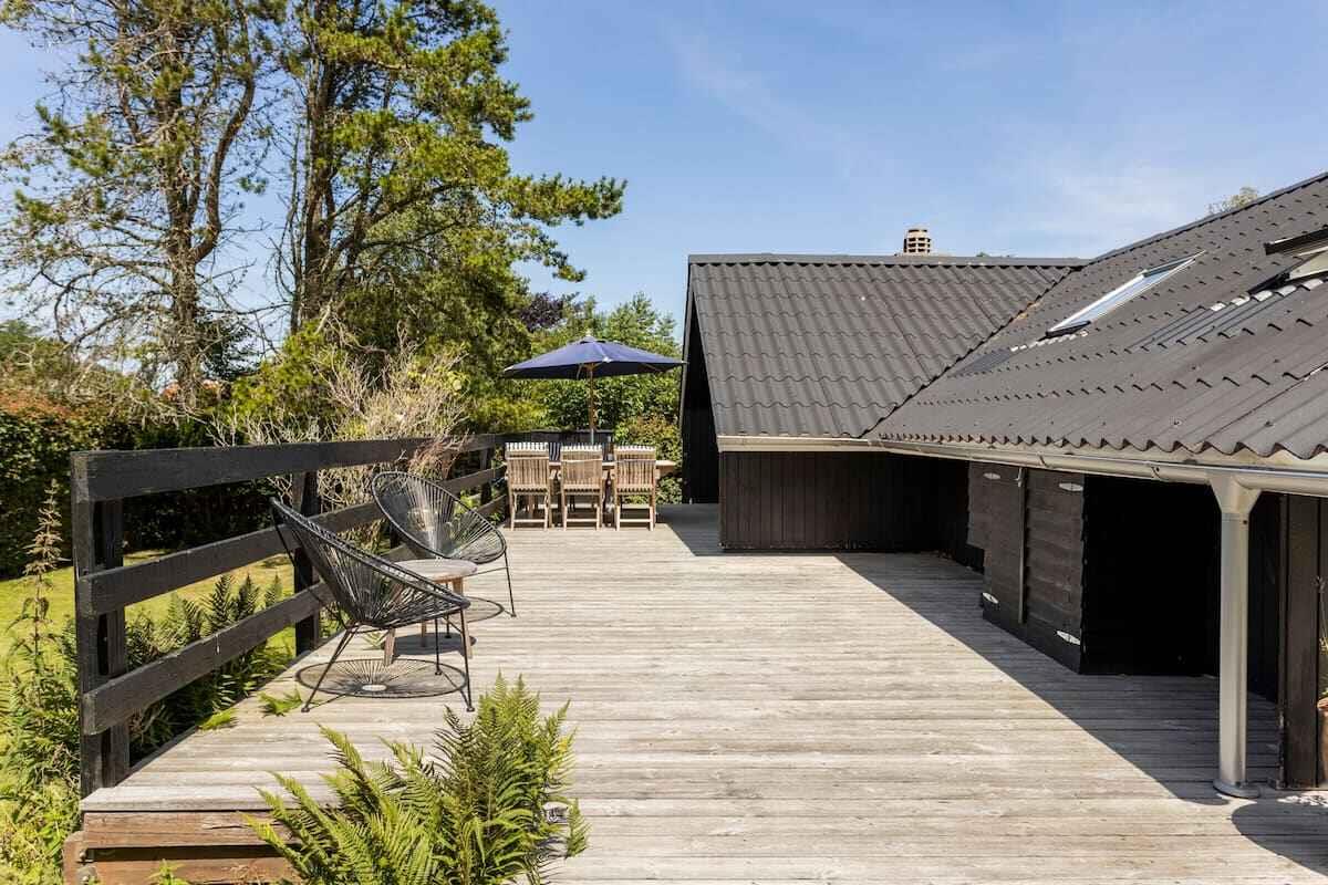 Großes Holzferienhaus in Tisvildeleje mit Terrasse, nahe Strand, Wald und Stadt, ideal für Erholung und Aktivitäten.