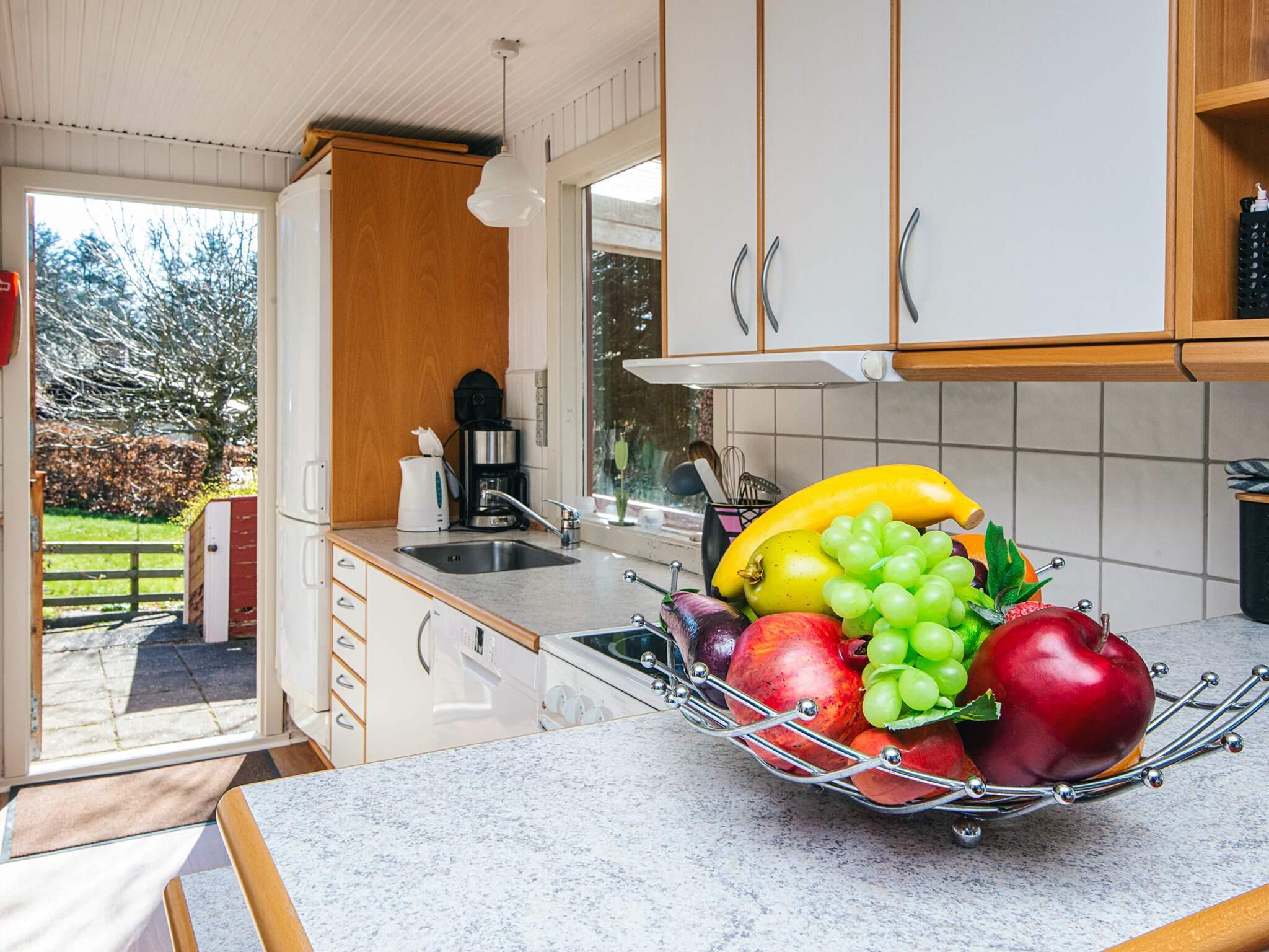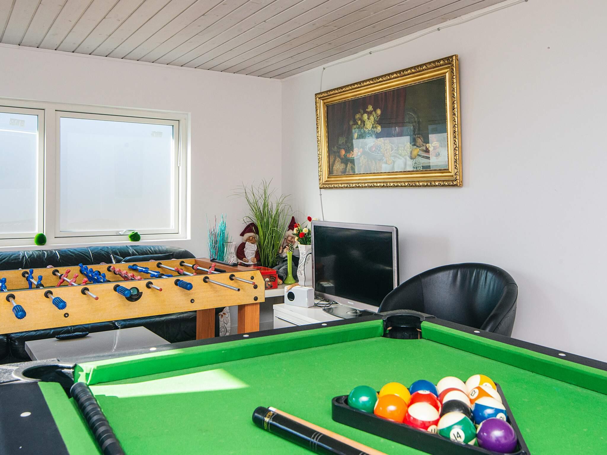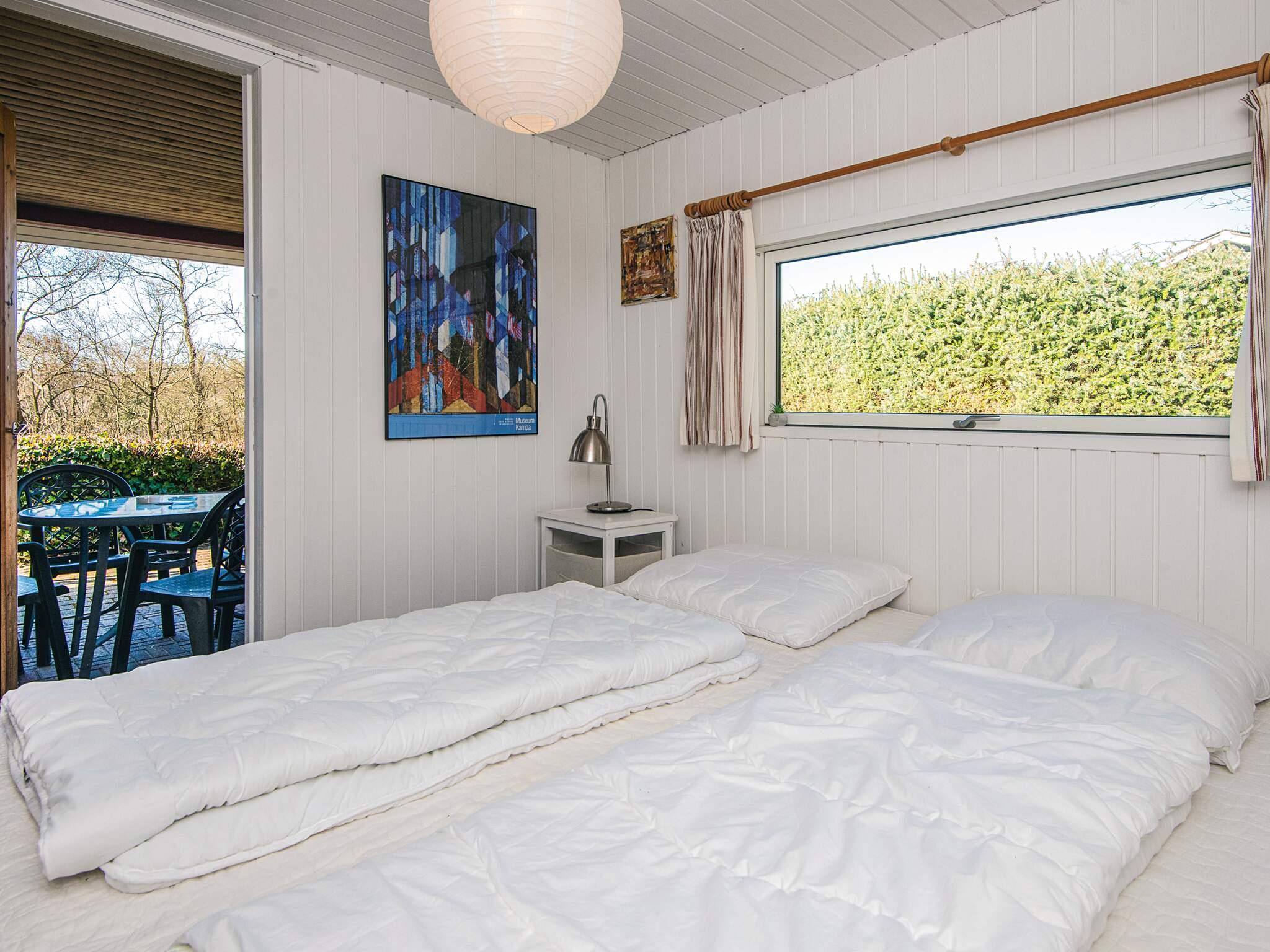 Ferienhaus bei Toftum Bjerge. Im Wohnzimmer freies WLAN und gemütliche Einrichtung. Küche mit u.a. Geschirrspüler. Zwei Schlafzimmer mit Doppelbett und ein Zimmer mit Etagenbett mit zwei Kojen. Die klimafreundliche Wärmepumpe sorgt für angenehme Wärme im Haus. Terrasse rund um das Haus. Dusche direkt vor der Haustür. Pool und Darts im Haus.