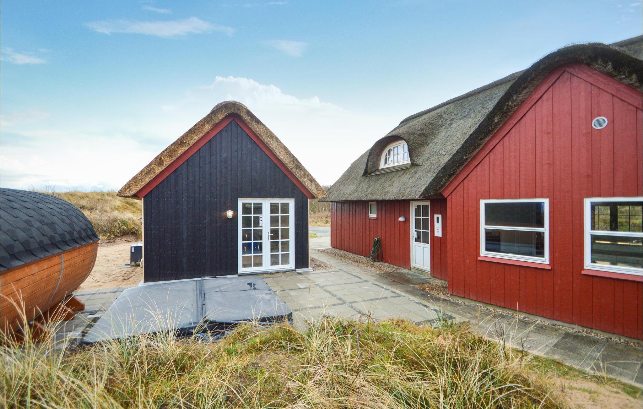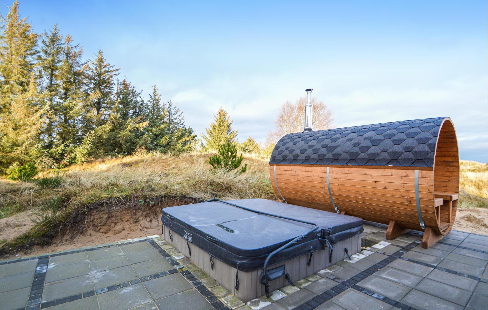 Das schöne Ferienhaus für insgesamt 10 Personen liegt im Norden Rømøs. Hier erwartet Sie ein schönes Haus mit einem eigenen Wellnessbereich: Im Innenbereich gibt es einen gut eingerichteten Poolbereich mit Rutsche und separater Dusche, während draußen sowohl ein Whirlpool als auch eine eigene Sauna errichtet sind. Wohnraum und Küche sind komfortabel eingerichtet und Sie können den Blick auf die umoliegende Dünenlandschaft genießen.