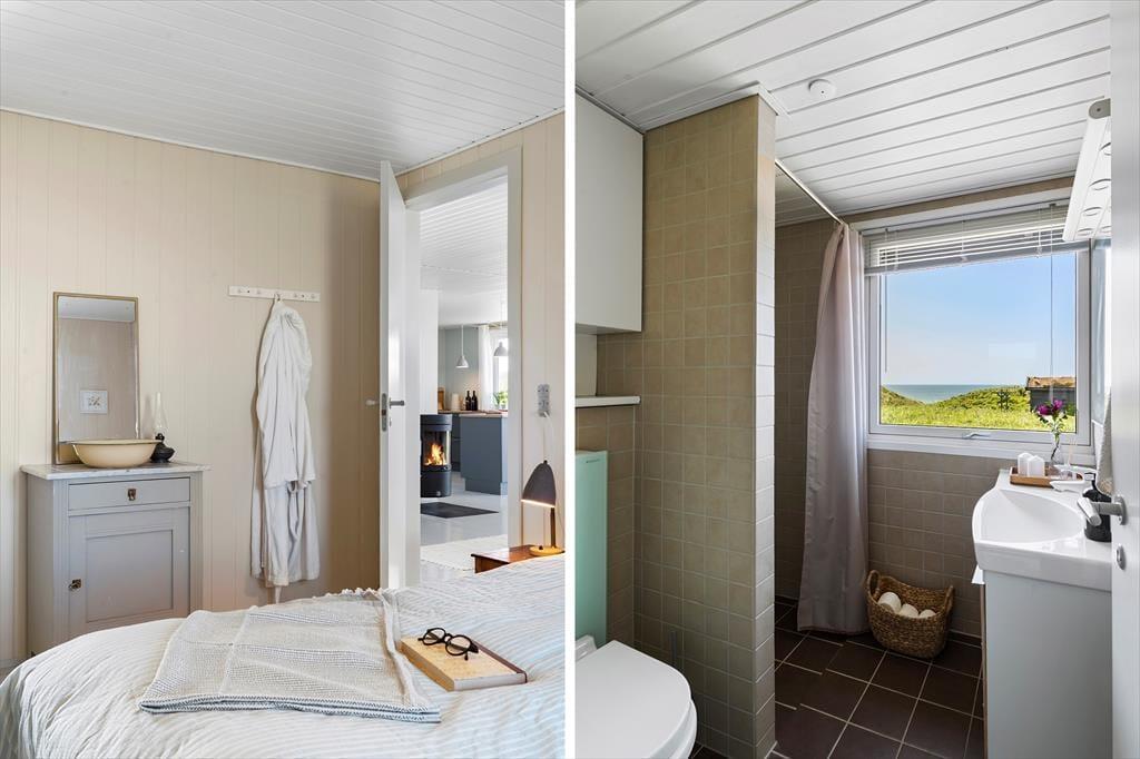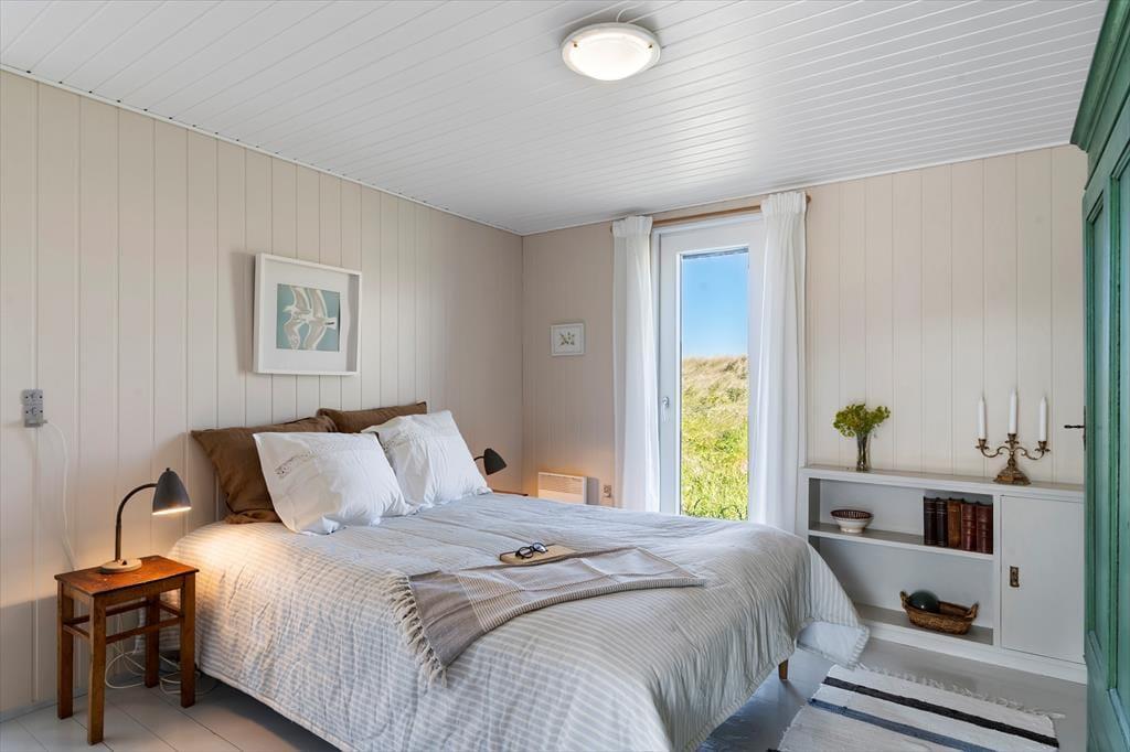 Die idyllische Stimmung wird durch das ansprechende Hausinnere perfekt unterstrichen. Das Interieur ist in hellen und blauen Farbtönen gehalten. Große Fenster sorgen für Aussicht auf das Meer und die Dünen. Den Ausblick genießen Sie während der Zubereitung der Mahlzeiten in der offenen Küche und während geselliger Runden am Esstisch. Auf dem Sofa verleben Sie gemütliche Stunden mit einem guten Buch oder einem Film auf dem Flachbild-TV. Für eine behagliche Atmosphäre sorgt derweil der Kaminofen. Ein schönes Duschbadezimmer und ein kleiner Hauswirtschaftsbereich mit einem Waschtrockner sind ebenso vorhanden, wie drei Schlafräume, die insgesamt acht Schlafplätze bieten.