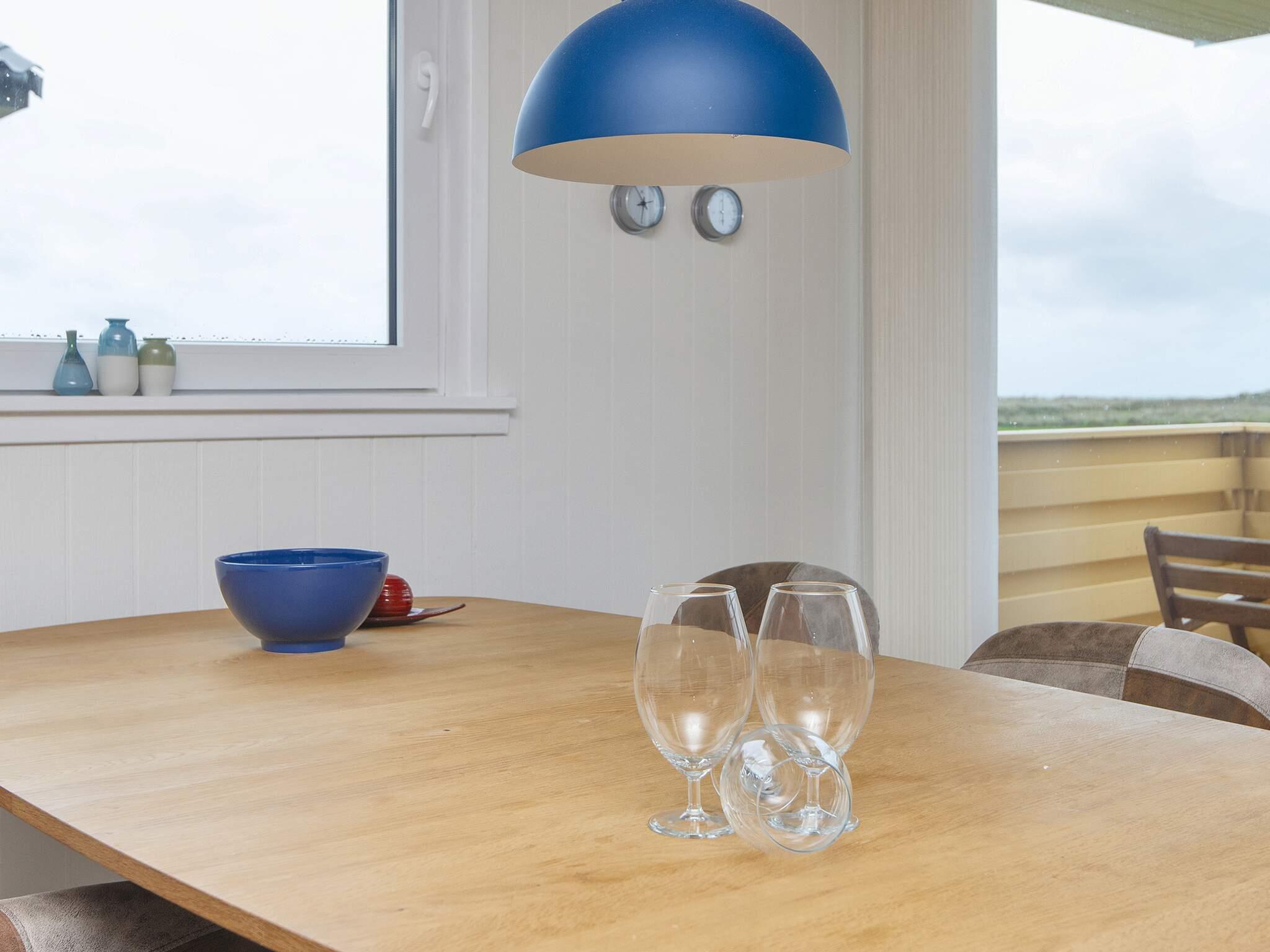 Das hell und freundlich eingerichtete Haus hat innen einen offenen Küchen-/Wohnbereich, ausgestattet mit sowohl Holzofen als auch stromsparender Wärmepumpe. Vom Wohnbereich hat man Meerblick! Zur technischen Ausstattung gehören u.a. Flachbild-TV mit deutschen Sendern zur Auswahl sowie CD- und DVD-Spieler und WLAN. Zur Küchenausstattung gehören u.a. Ceranfeld und Mikrowelle. Helles, zeitgemäß eingerichtetes Badezimmer. Das Naturgrundstück liegt in offener Landschaft, nur etwa 50 m Luftlinie vom herrlichen Nordseestrand, an dem die Kinder sich wunderbar austoben können.