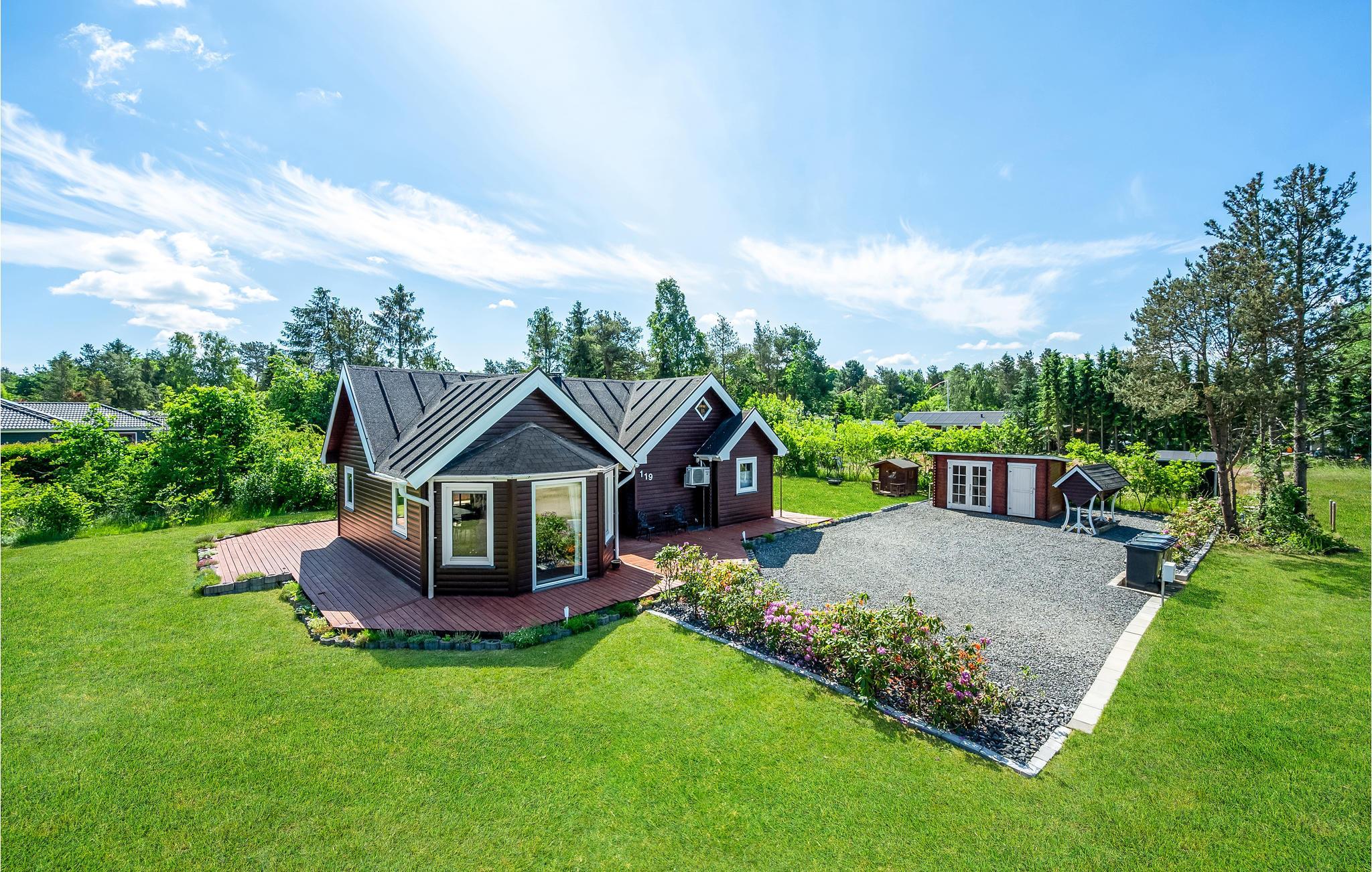 Willkommen in einem architektonisch spannenden Ferienhaus, welches Ihnen einen idealen Ort für Entspannung und sportlichen Aktivitäten bietet. Es handelt sich dabei um ein aus Holz gebautes Haus, welches mit stilvollen Dekorationselementen geziert ist, und ein angenehmes Raumklima durch eine Sichtbalkendecke aufweist. Genießen Sie das offene Wohnkonzept, wobei die Hauptaufenthaltsräume funktionell miteinander verbunden sind und dadurch dem Tageslicht genug Raum zum entfalten geben. Kinder werden sich vor allem auf den Schlafboden freuen, welcher ihnen einen aufregenden Raum gibt, um sich zu vergnügen.