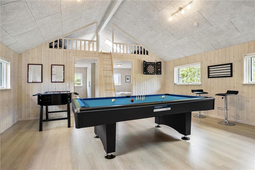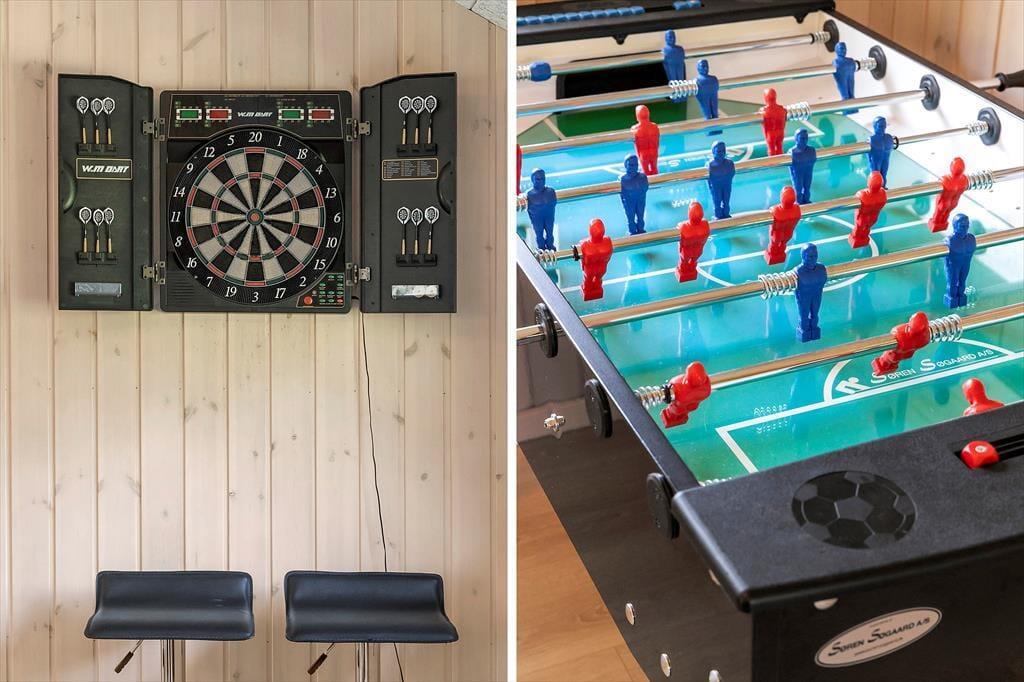 Das Ferienhaus ist hell und einladend, mit großen Fenstern, die viel natürliches Licht hereinlassen und eine herrliche Atmosphäre schaffen. Die offene Küche mit Essbereich lädt zu gemütlichen Mahlzeiten und geselligem Beisammensein ein, während das Wohnzimmer mit bequemen Möbeln und einem Kamin zum Entspannen nach einem erlebnisreichen Tag einlädt. Das große Spielzimmer ist ein Highlight für Kinder und Erwachsene, wo ihr euch bei Tischtennis herausfordern oder einfach gemeinsam Spaß haben könnt. Die hellen Schlafzimmer sorgen für einen erholsamen Schlaf, damit alle ausgeruht und bereit für neue Urlaubstage an der Küste sind.