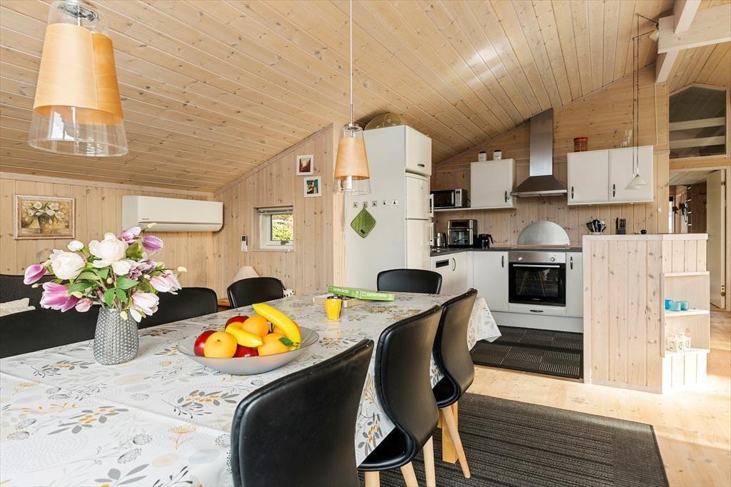 Das Ferienhaus liegt auf einem schönen Naturgrundstück, umgeben von hohen Bäumen, die für eine friedliche und private Atmosphäre sorgen. Auf der Terrasse kannst du die Sonnenstrahlen von morgens bis abends genießen, während die Kinder auf dem Rasen spielen. Ein lauer Sommerabend wird perfekt, wenn du ein leckeres Essen grillst und dich mit deiner Familie oder Freunden am Tisch zu fröhlichen Gesprächen versammelst. Nur wenige Gehminuten entfernt erwartet dich der nahegelegene Strand, wo du den Sand zwischen den Zehen spüren und das Rauschen der Wellen genießen kannst.