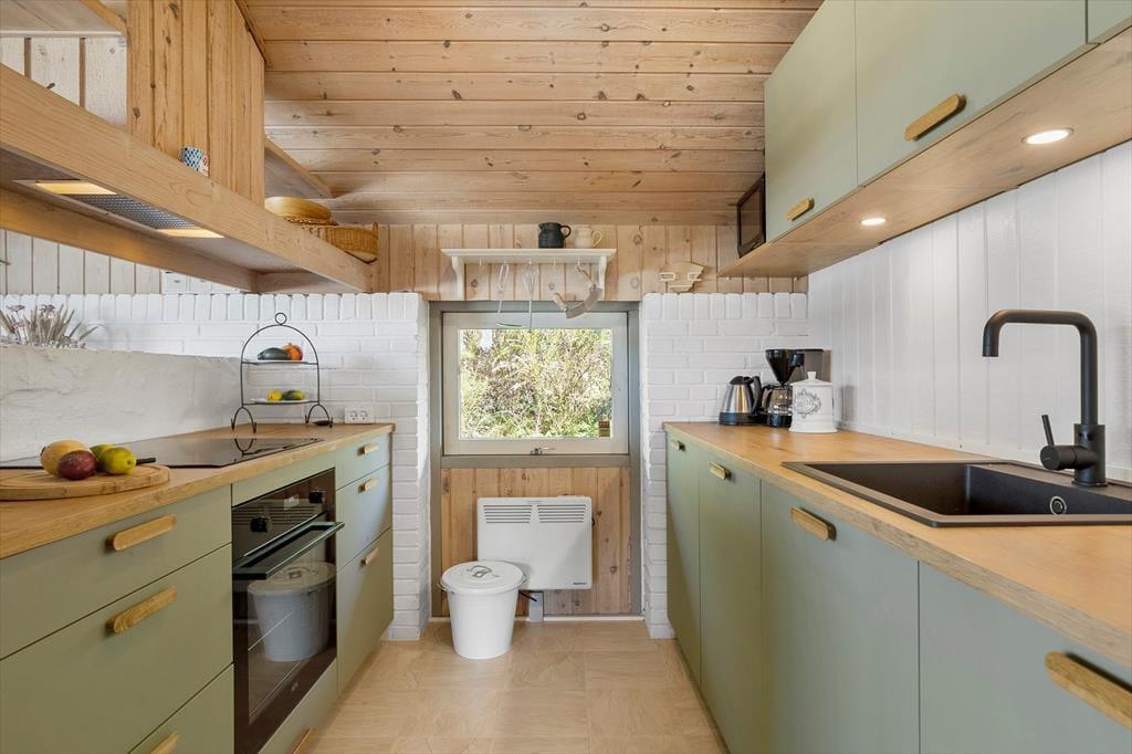 Betrete dieses charmante Ferienhaus und spüre sofort die einladende und helle Atmosphäre. Die großen Fenster im Wohnzimmer lassen die Natur herein und bieten einen wunderschönen Blick auf die umliegende Landschaft. Die Einrichtung ist schlicht und gemütlich, mit einer offenen Verbindung zwischen Küche und Wohnzimmer, sodass die Familie zusammen sein kann – egal, ob gekocht oder entspannt wird. Hier findest du Raum für Erholung und Geselligkeit, ideal für eine Auszeit vom Alltag.