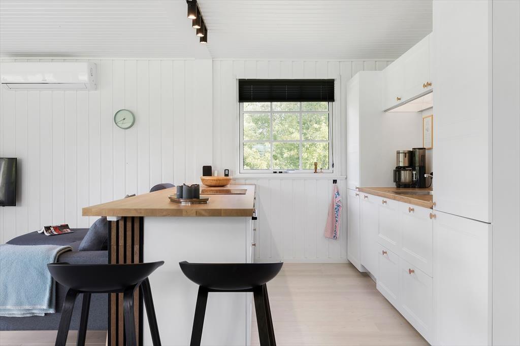 Beim Betreten empfängt Sie eine helle und einladende Einrichtung, die sofort für Entspannung sorgt. Das Ferienhaus wurde mit viel Liebe zum Detail renoviert und vereint moderne Funktionalität mit dem ursprünglichen Charme eines klassischen Sommerhauses. Das Wohnzimmer bildet den natürlichen Mittelpunkt des Hauses – hier ist Platz für gesellige Spieleabende, spannende Filme oder entspannte Stunden mit einem Buch und einer Tasse Kaffee. Die offene Küche ist praktisch in den Wohnbereich integriert, sodass Gespräche und gemeinsames Beisammensein beim Kochen und Essen ganz selbstverständlich werden. Die Schlafzimmer sind schlicht und gemütlich eingerichtet, sodass Sie ruhig schlafen und erholt in einen neuen Urlaubstag starten können.