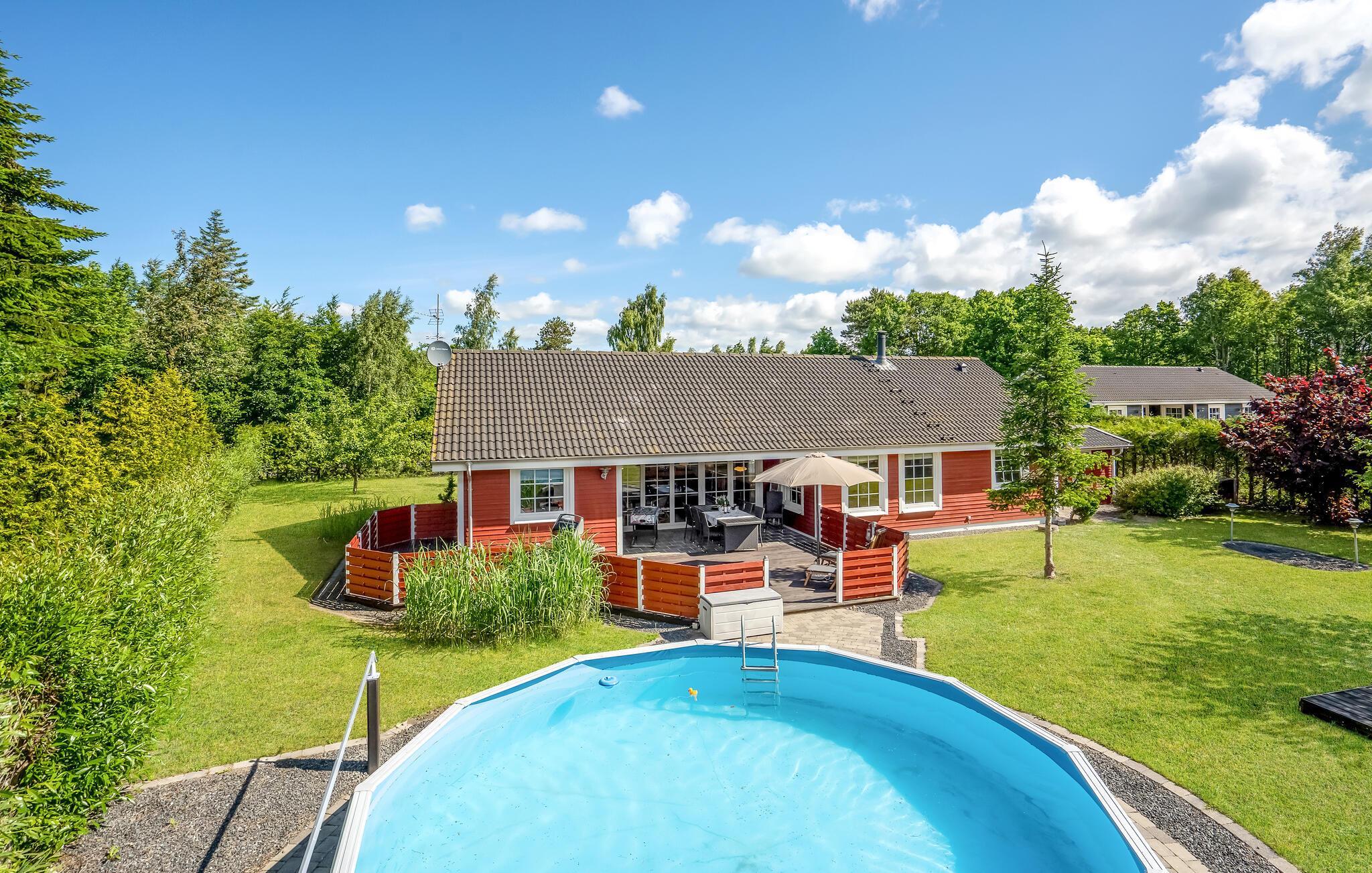 Hier betreten Sie ein auffallend gepflegtes Ferienhaus mit Whirlpool und Außenpool, nah am Randers Fjord und dem Meer.