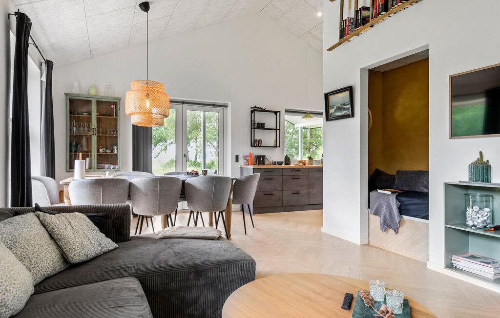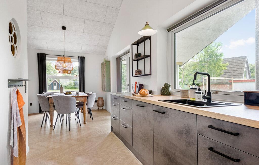 Erleben Sie einen erholsamen Urlaub in diesem elegant eingerichteten Ferienhaus mit einem interessanten Außenbereich. Starten Sie Ihren Tag mit einer frisch gebrühten Tasse Kaffee und bereiten Sie ein leckeres Frühstück für die Familie vor. In der geräumigen, offenen Küche finden Sie alles, was Sie zum Kochen benötigen. Am Esstisch und auf dem bequemen Sofa ist viel Platz für die ganze Familie, und im ganzen Haus herrscht eine gemütliche und heimelige Stimmung. Verbringen Sie Zeit mit Ihrer Familie bei lustigen Gesellschaftsspielen oder lesen Sie Ihren Kindern ein spannendes Buch vor.
