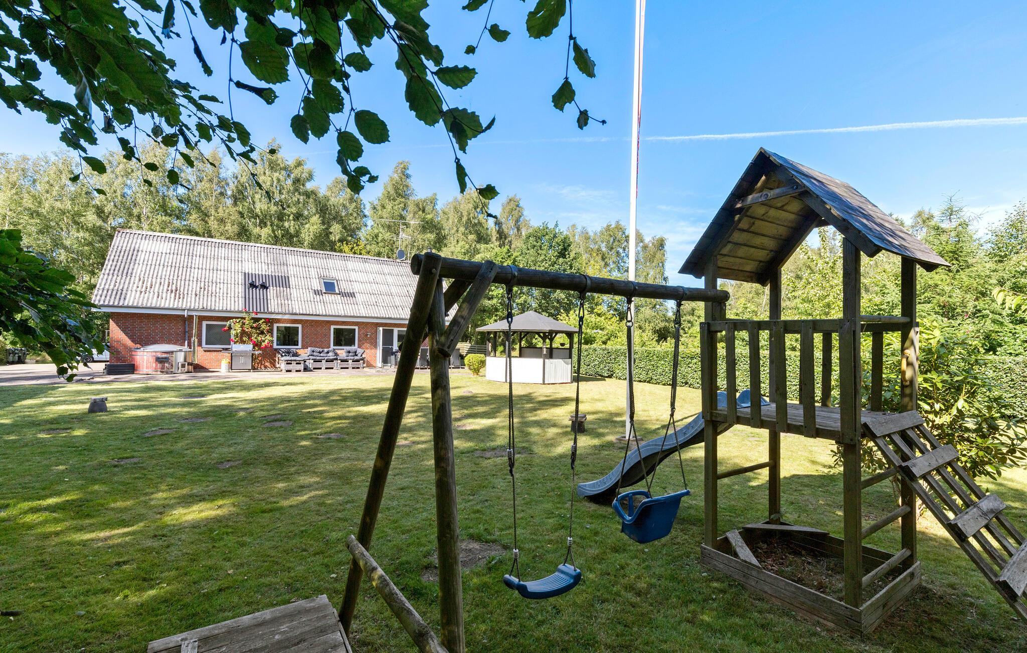Großzügiges Ferienhaus in Ørsted mit finnischem Holzbad, moderner Küche und großem Garten für entspannte Familienurlaube.
