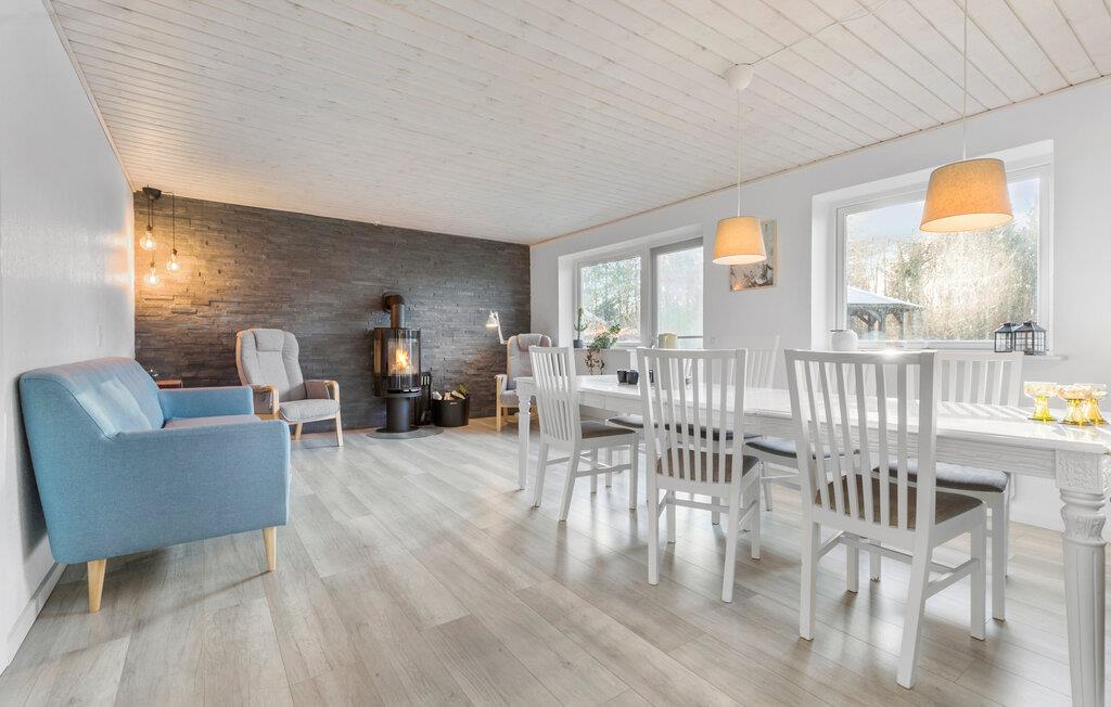 Willkommen in diesem komfortablen Ferienhaus in idyllischer Lage. Lassen Sie sich vom hellen, geschmackvollen Interieur überraschen, in dem sich junge Gäste ebenso wohlfühlen wie die Großen. Schwingen Sie in der modernen Küche gemeinsam den Kochlöffel und zelebrieren Sie Ihre Mahlzeiten an der langen Esstafel. Kuscheln Sie sich abends auf die Sofalandschaft, streamen Sie einen Film oder legen Sie die Beine für entspannte Lesestunden auf den bequemen Sesseln hoch.