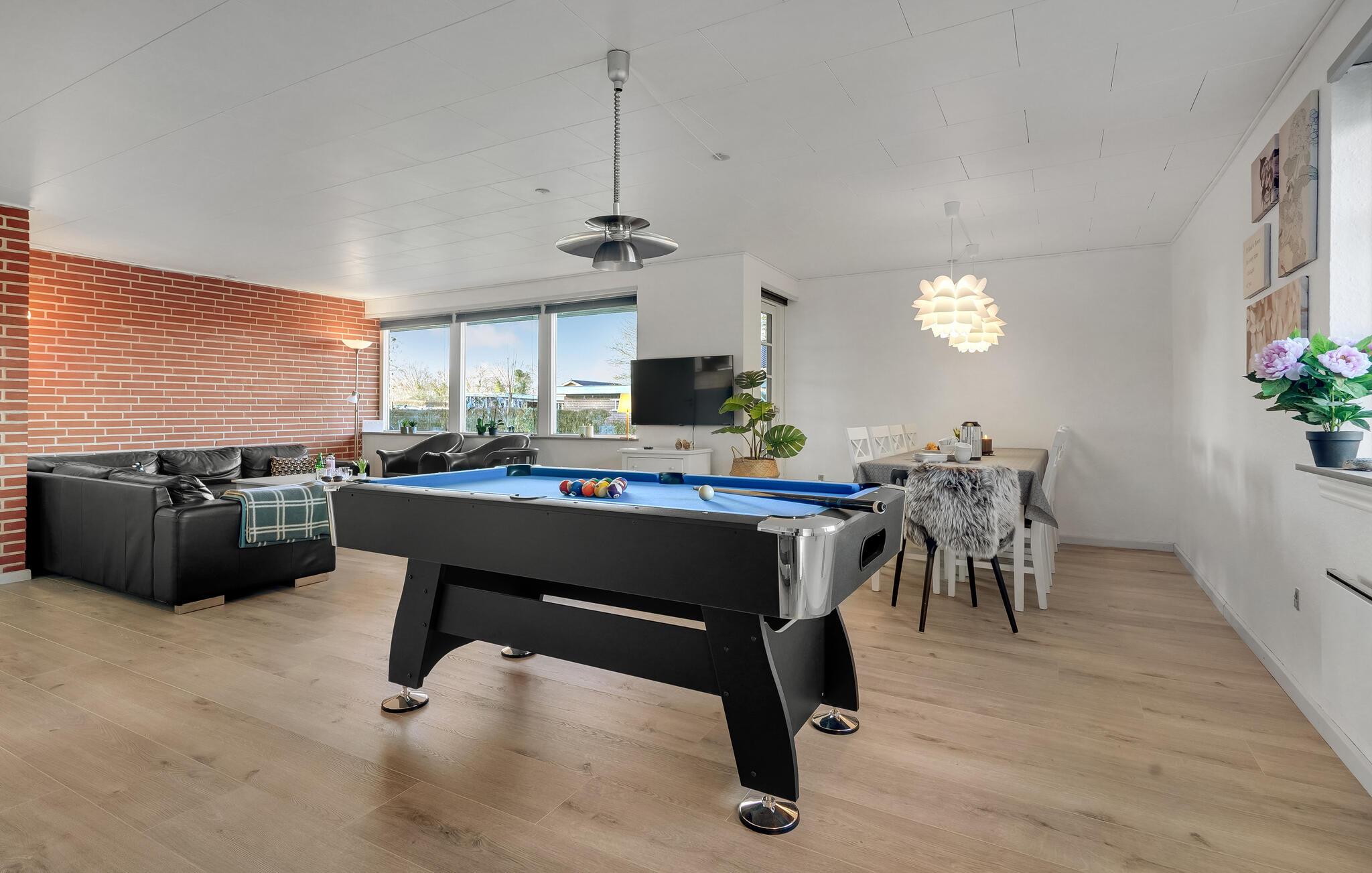Willkommen in diesem hübschen Ferienhaus, das Platz für Sie und Ihre Großfamilie bietet. Vom Kleinkind bis zu den Großeltern werden sich hier alle wohlfühlen und eine entspannte Zeit verbringen. Während die einen in Ruhe ein Buch auf dem Sofa lesen, können die anderen ein Partie Billard spielen oder am Esstisch Karten spielen. Zwei Terrassen laden Sie zum Schlemmen und Sonnenbaden ein. Genießen Sie Ihre gegrillten Speisen oder schauen Sie Ihren Kindern beim Toben auf dem Rasen zu.