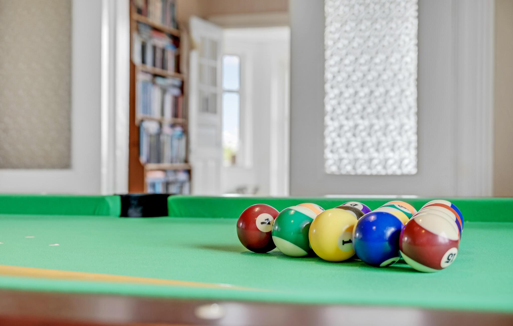Das Wohnzimmer mit Sofa, Sessel und Kaminofen verbindet moderne Elemente mit rustikalem Charme. Machen Sie es sich vor dem Feuer gemütlich oder nutzen Sie den angrenzenden Raum mit Billardtisch für Spiel und Spaß. Große Fenster geben den Blick auf die offene Landschaft frei. Nehmen Sie im Essbereich Platz und genießen Sie gemeinsame Mahlzeiten.