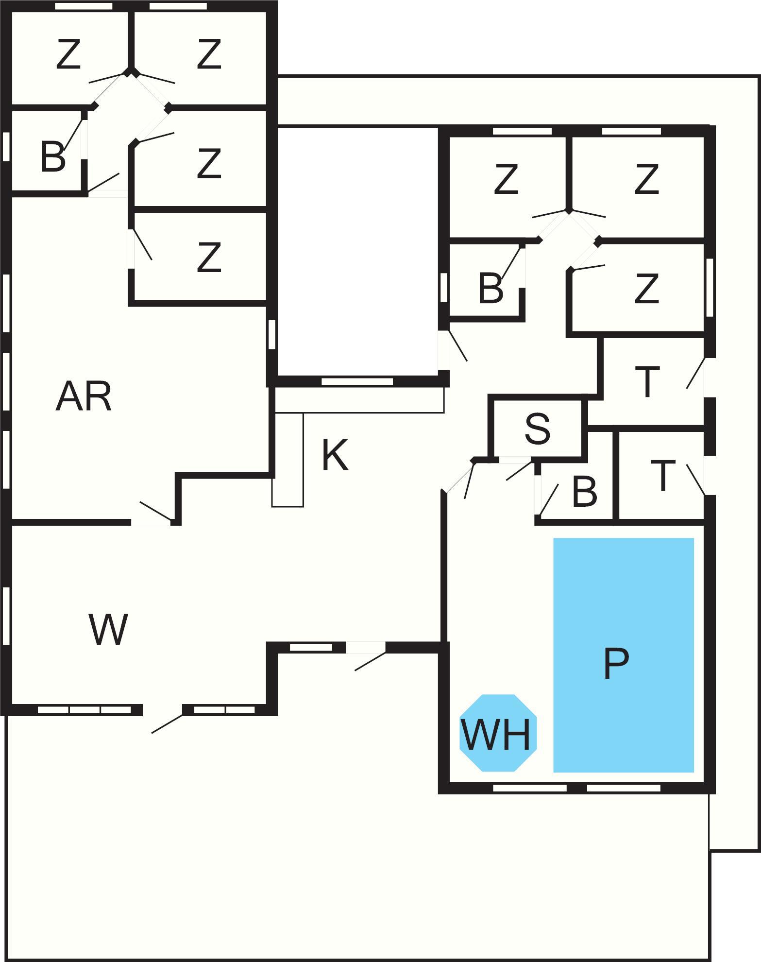 Das äußerst geräumige Ferienhaus hat eine gute Raumaufteilung mit zwei separaten Schlafbereichen mit zugehörigem Duschbad und einem dritten Badezimmer in Verbindung mit der Poolabteilung.