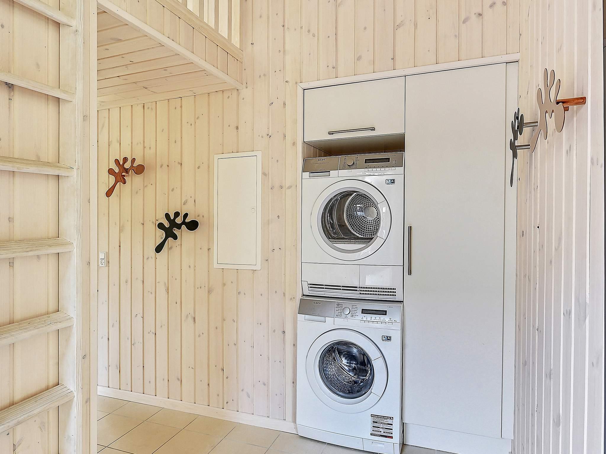 Der offene Ess- und Wohnbereich ist geschmackvoll eingerichtet. Zur Unterhaltung gibt es Stereoanlage mit CD-Spieler, TV, DVD-Spieler sowie freies WLAN (1000 Mbit). Außerdem stehen zwei geräumige Lofts zur Verfügung; ein Schlafboden mit Boxmatratzen und ein Spielboden mit Sitzsäcken und Fernseher. In der gut durchdachten Küche gibt es u.a. einen großen Kühlschrank, einen Gefrierschrank und einen Geschirrspüler.