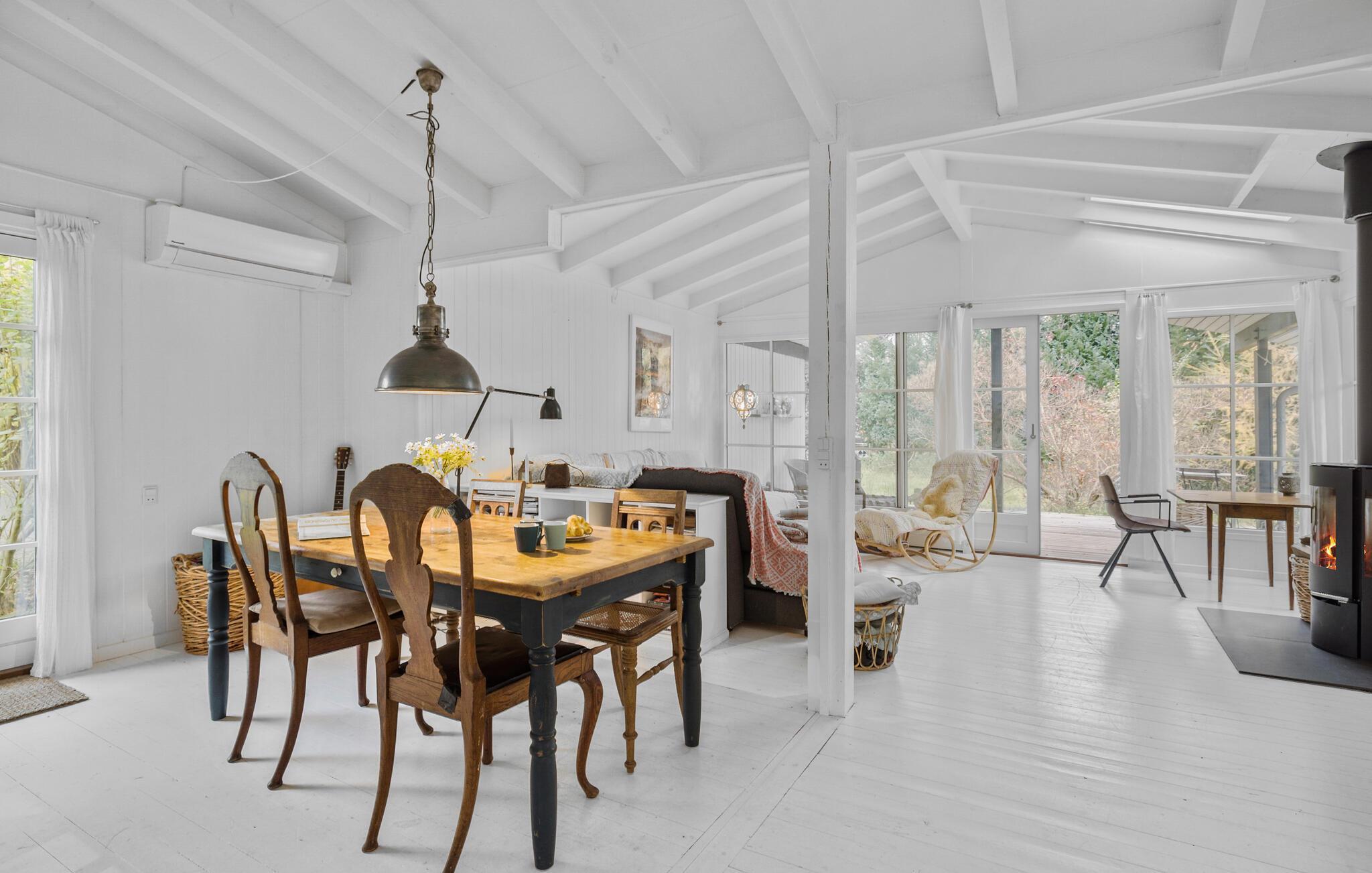 Im Inneren des Hauses erwartet Sie eine geschmackvolle, helle Einrichtung, die zum Verweilen einlädt. Entspannen Sie sich in der gemütlichen Sofaecke vor dem Kamin, der besonders an kühleren Abenden eine wohlige Wärme verströmt. In der offenen Küche, die mit allem ausgestattet ist, was Sie benötigen, können Sie leckere Mahlzeiten zubereiten. Nehmen Sie Platz am rustikalen Esstisch und genießen Sie die gemeinsamen Stunden mit der Familie oder Freunden. Die Kombination aus modernem Komfort und skandinavischem Flair macht dieses Ferienhaus zu einem besonderen Ort der Erholung.