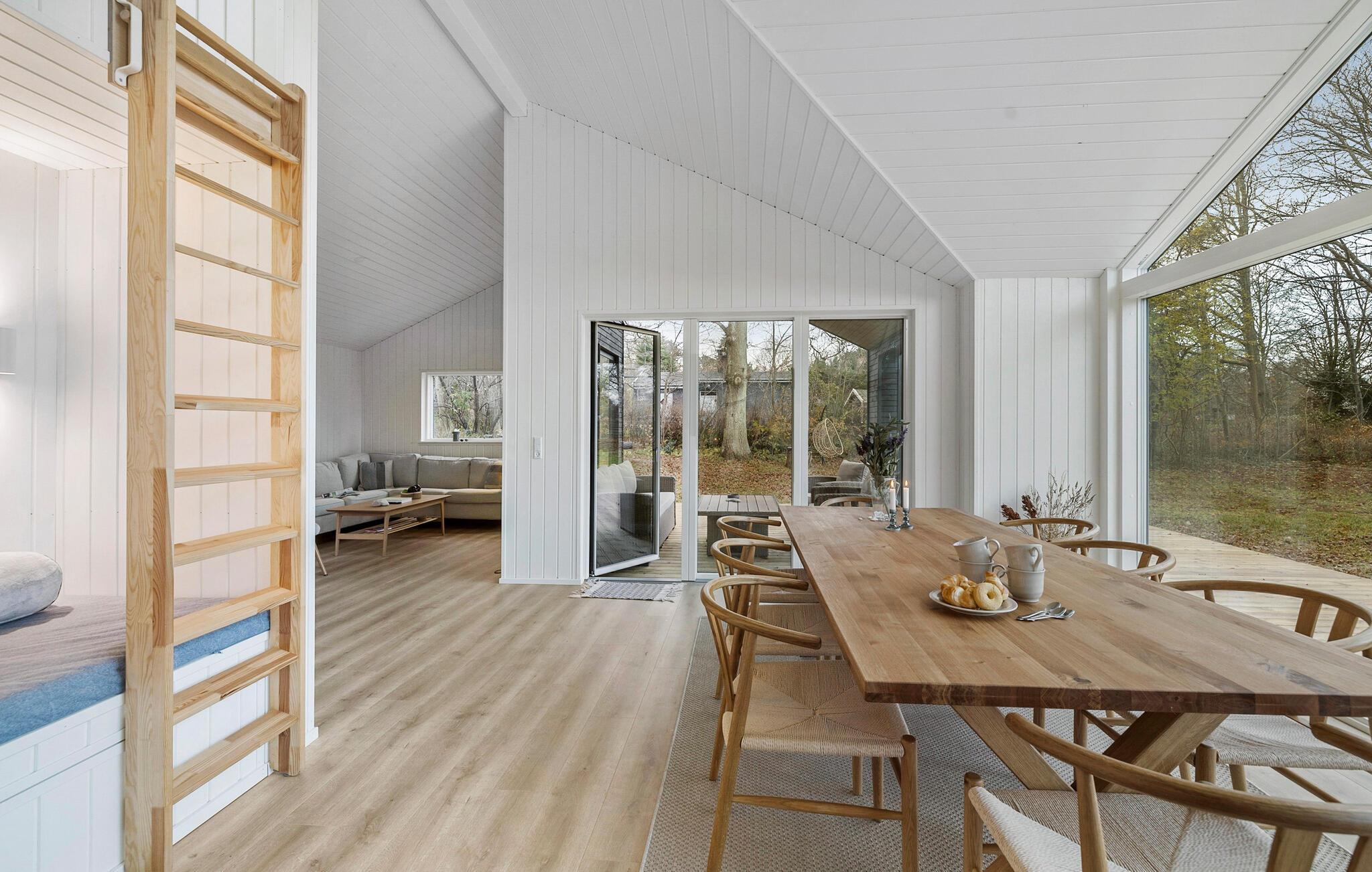 Erleben Sie eine Auszeit voller Entspannung und Naturverbundenheit in diesem elegant eingerichteten Ferienhaus. Genießen Sie die frische Luft und lassen Sie den Alltag hinter sich, während Sie die ruhige Atmosphäre dieses besonderen Ortes auf sich wirken lassen. Im Innenbereich erwartet Sie eine stilvolle und helle Einrichtung, die für Gemütlichkeit sorgt. Machen Sie es sich in der Sofaecke bequem und schauen Sie einen spannenden Film oder lesen Sie ein gutes Buch. Die geräumige, offene Küche lädt dazu ein, köstliche Gerichte zuzubereiten. Am schönen Esstisch können Sie gemeinsame Mahlzeiten genießen und gesellige Stunden verbringen. Das Zusammenspiel aus modernem Komfort und skandinavischer Gemütlichkeit macht dieses Haus zu einem idealen Rückzugsort für Ihren Urlaub.