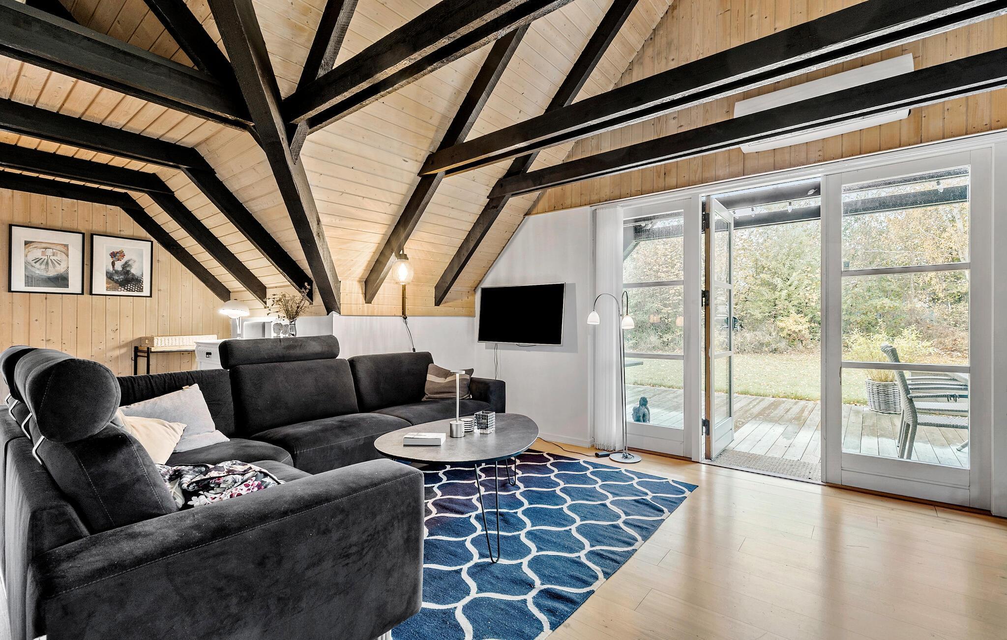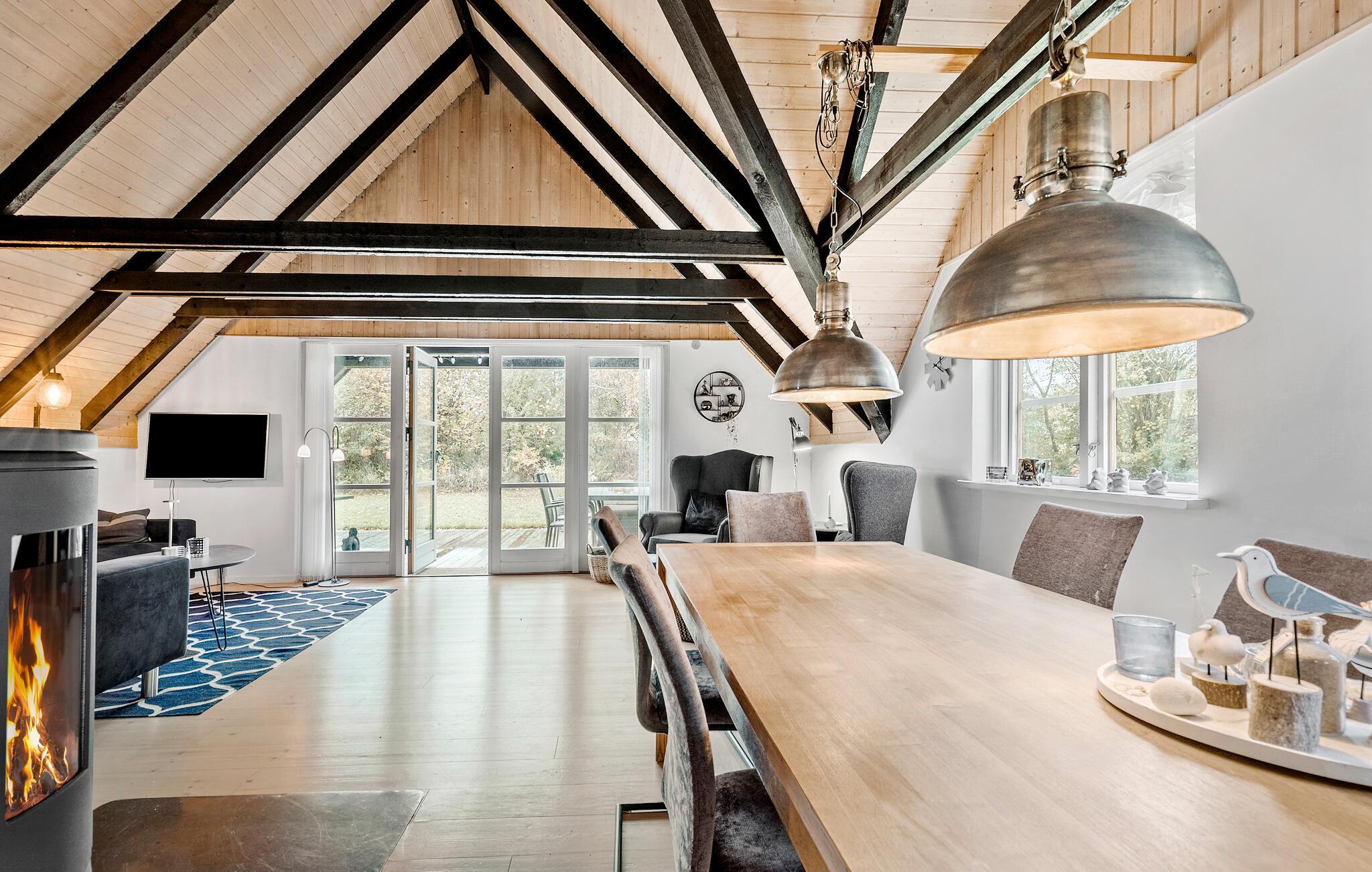 In diesem charmanten Ferienhaus nahe Udsholt Strand genießen Sie eine warme, behagliche Atmosphäre. Die charaktervollen Wohnräume mit Dachschrägen, Holzverkleidung und markanten Dachbalken schaffen eine einzigartige, gemütliche Umgebung. Besonders reizvoll ist der offene Schlafboden – ein kleines Refugium für erholsame Nächte. Versammeln Sie sich um den Kamin für entspannte Kuschel- und Spielstunden, oder genießen Sie lange, gesellige Abende auf der teils überdachten Holzterrasse. Der grüne Garten lädt zum Spielen und Umhertoben ein – perfekt für Familien!