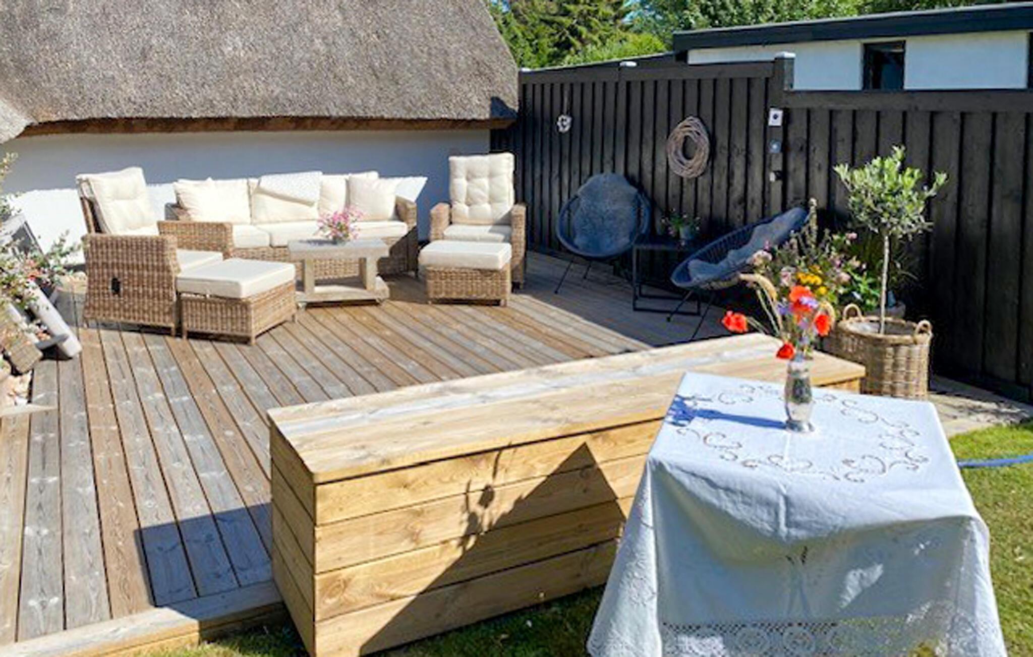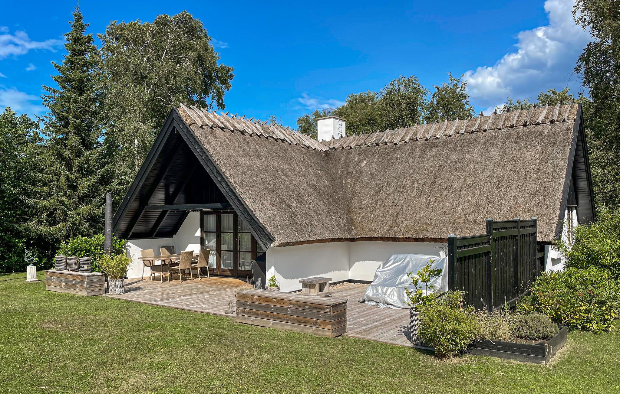 Gemütliches Reetdachhaus mit Kamin, privatem Garten und Nähe zum Udsholt Strand bietet Erholung für die ganze Familie.