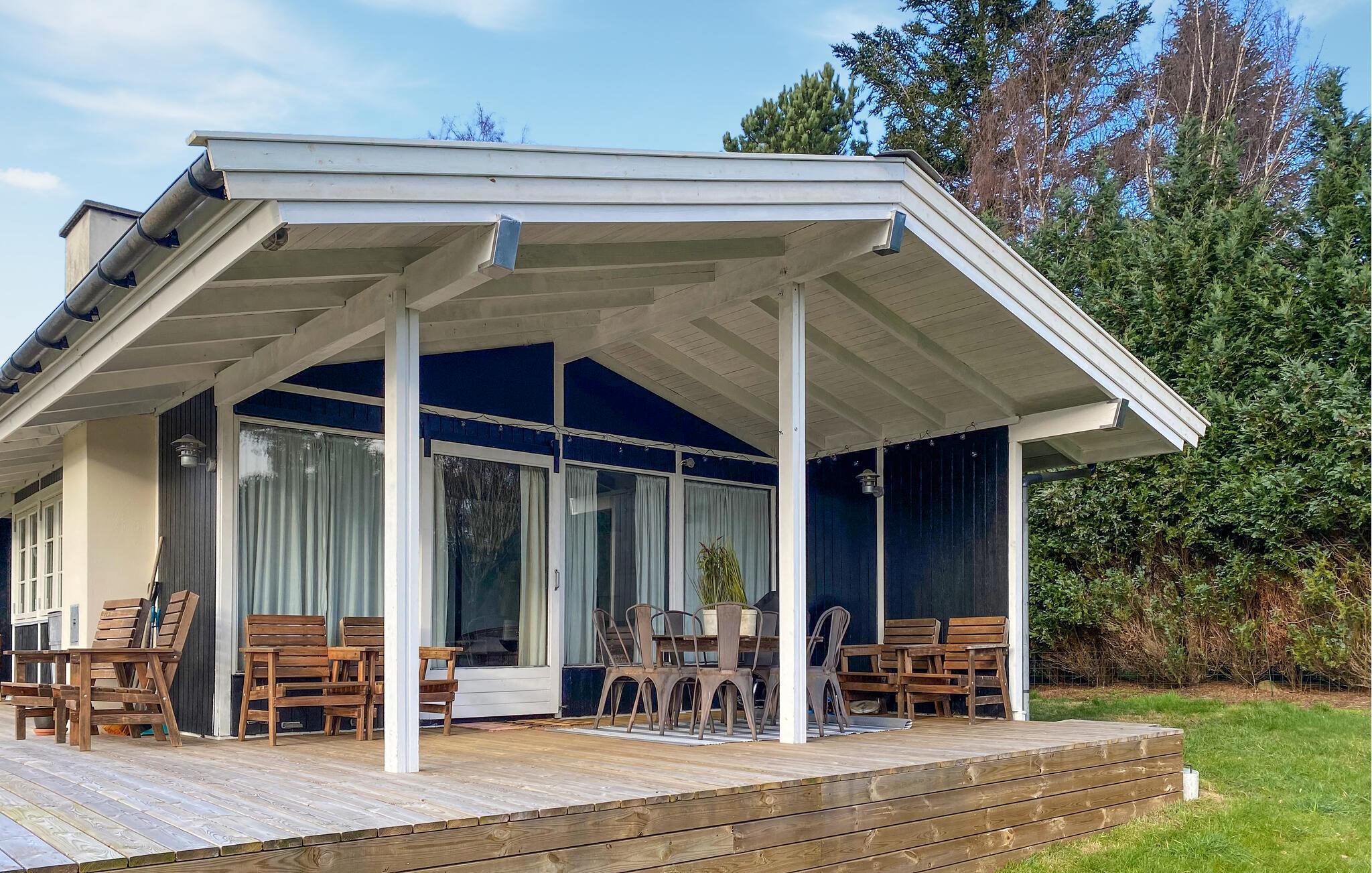 Gemütliches Ferienhaus in Udsholt Strand mit Kamin, großer Terrasse und eingezäuntem Garten für erholsame Urlaubstage.