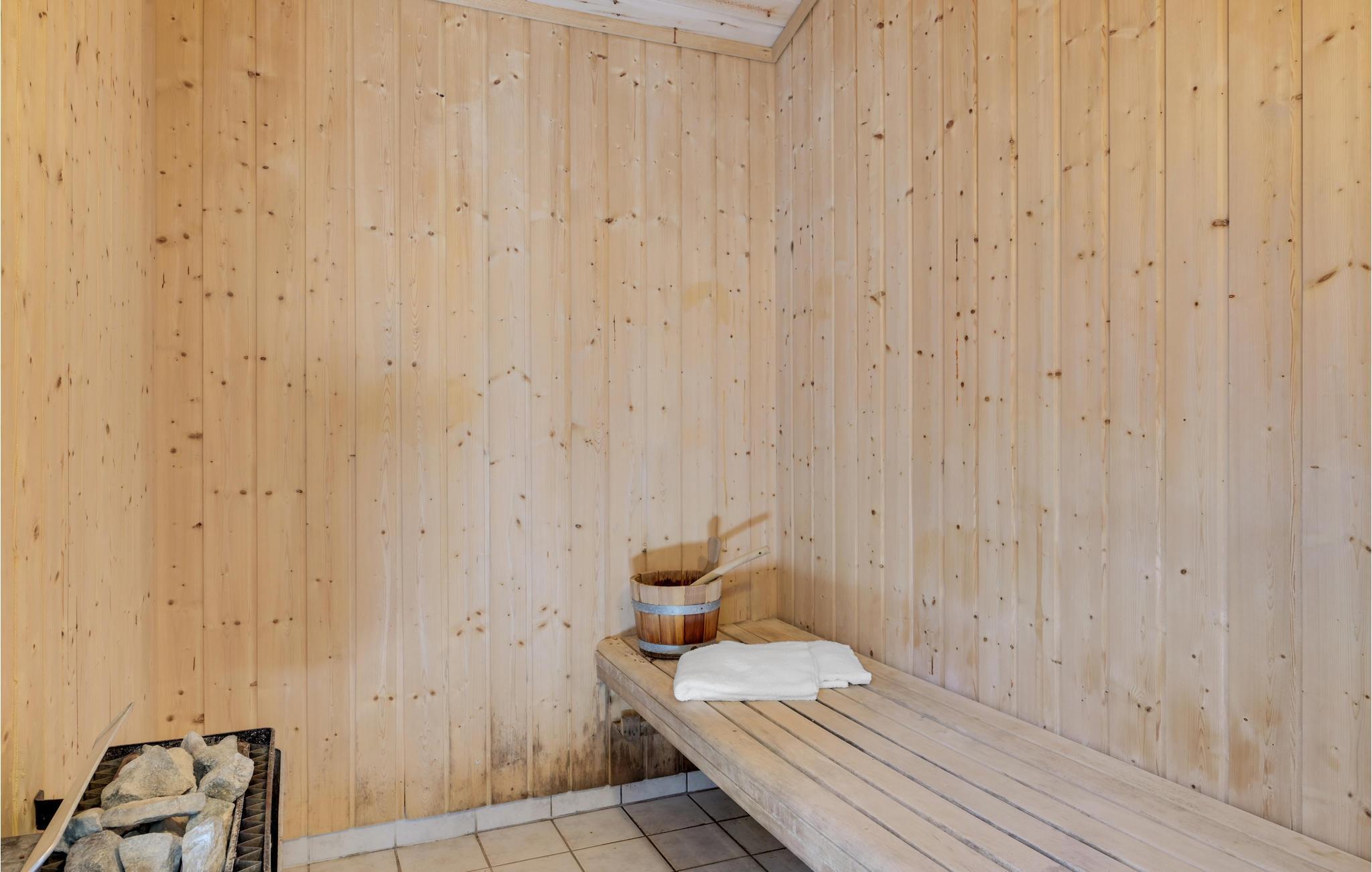 Schönes Ferienhaus für den perfekten Familienurlaub. Das Haus liegt friedlich und am Ende einer Sackgasse, umgeben von einem großen Garten der gut zum Ballspielen geeignet ist. Den Mittelpunkt des Hauses bildet die praktische Wohnküche. Vom Wohnbereich können Sie gut das lustige Treiben im Pool verfolgen, denn er ist nur durch eine Glaswand getrennt. Im Poolraum liegt ein Badezimmer mit Sauna und Whirlpool. 5 Schlafzimmer machen das Haus dieses Ferienhaus von der Terrasse. In der Umgebung gibt es viele Aktivitätsmöglichkeiten, wie u.a. Golf, Tennis, einen Fahrradverleih und Reitmöglichkeiten. Besuchen Sie auch den gemütlichen Hafen mit guten Restaurants und Fischgeschäften. Die Smidstrup Farm mit allen dänischen Hoftieren wird die Kinder begeistern. Munkeruphus mit wechselnden Ausstellungen ist einen Besuch wert.
