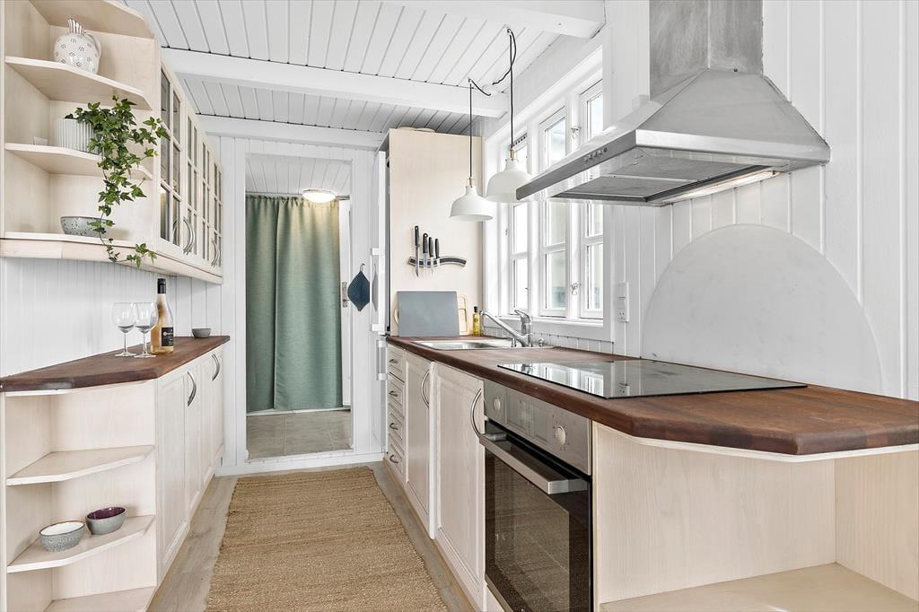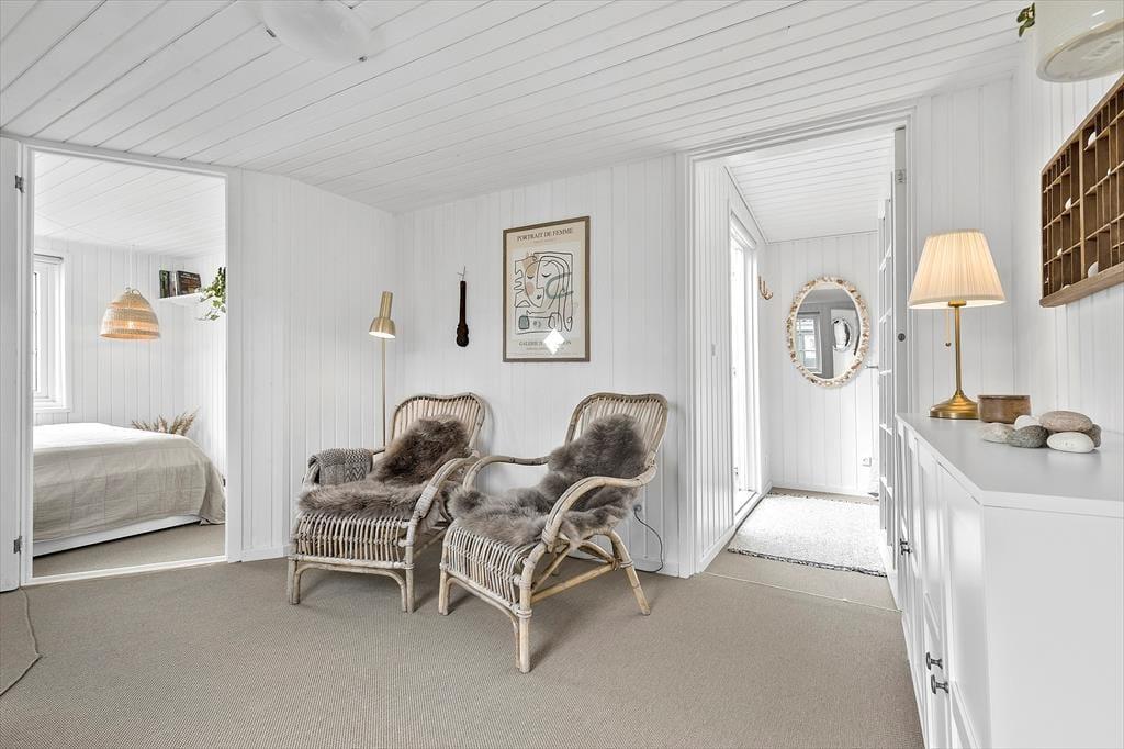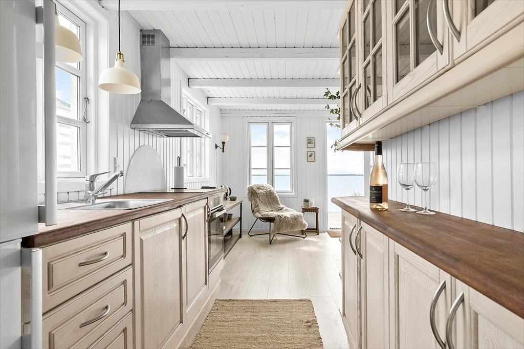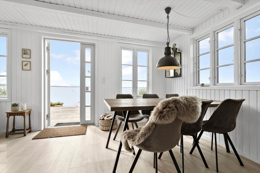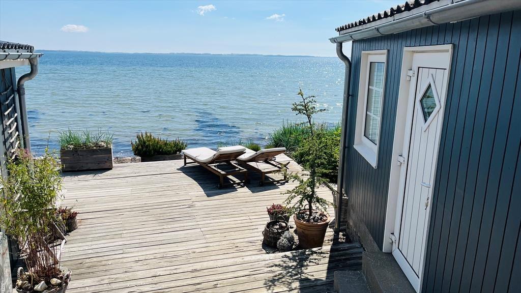 Stell dir vor, du wachst auf und hörst als erstes das sanften Rauschen der Wellen und die Rufe der Seevögel! Hier erwarten dich zwei wunderschöne Strandhäuser, die durch eine gemütliche Holzterrasse miteinander verbunden sind und direkt am Strand liegen – an manchen Tagen kannst du sogar direkt von der Terrasse aus ins Wasser gelangen. Dieses Ferienhaus verströmt eine echte Bohème-Strandhausatmosphäre voller Charme. Von allen Räumen aus könnt ihr die herrliche Aussicht auf den Strand genießen. Das erste Haus bietet einen offenen Wohnraum mit Wohnzimmer, Essbereich und Küche in einem, einen Kaminofen und eine Wärmepumpe, ein Schlafzimmer mit Doppelbett sowie ein Badezimmer mit Dusche. Das zweite Haus verfügt über zwei Schlafzimmer mit Doppelbetten, einen geräumigen Gemeinschaftsraum und ein Badezimmer mit Dusche – ideal für Familien und Freundesgruppen.