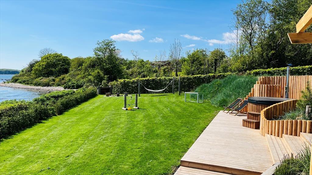 Mit einem wundervollen Garten in erster Reihe zum Strand seid ihr bereit für lange Tage unter freiem Himmel. Hier wurde an jedes Detail gedacht: eine schöne Rasenfläche mit Feuerstelle und Hängematte und viel Platz für Spiel und Spaß - nur - passt auf den Ball auf, denn er landet leicht im Wasser! Ihr entspannt auf den gemütlichen Terrassen, wo ihr einladende Ecken findet, um eine kleine Pause vom geschäftigen Urlaubsalltag einzulegen. Außerdem steht euch ein Einzelkajak für kleine Touren auf dem Wasser zur Verfügung – perfekt für Entspannung und Abenteuer. Neu hinzugekommen ist ein "Wildnisbad" oder auch "Schwedische Badetonne" genannt, sodass ihr auch an kühleren Tagen draußen eine schöne Zeit verbringen könnt.