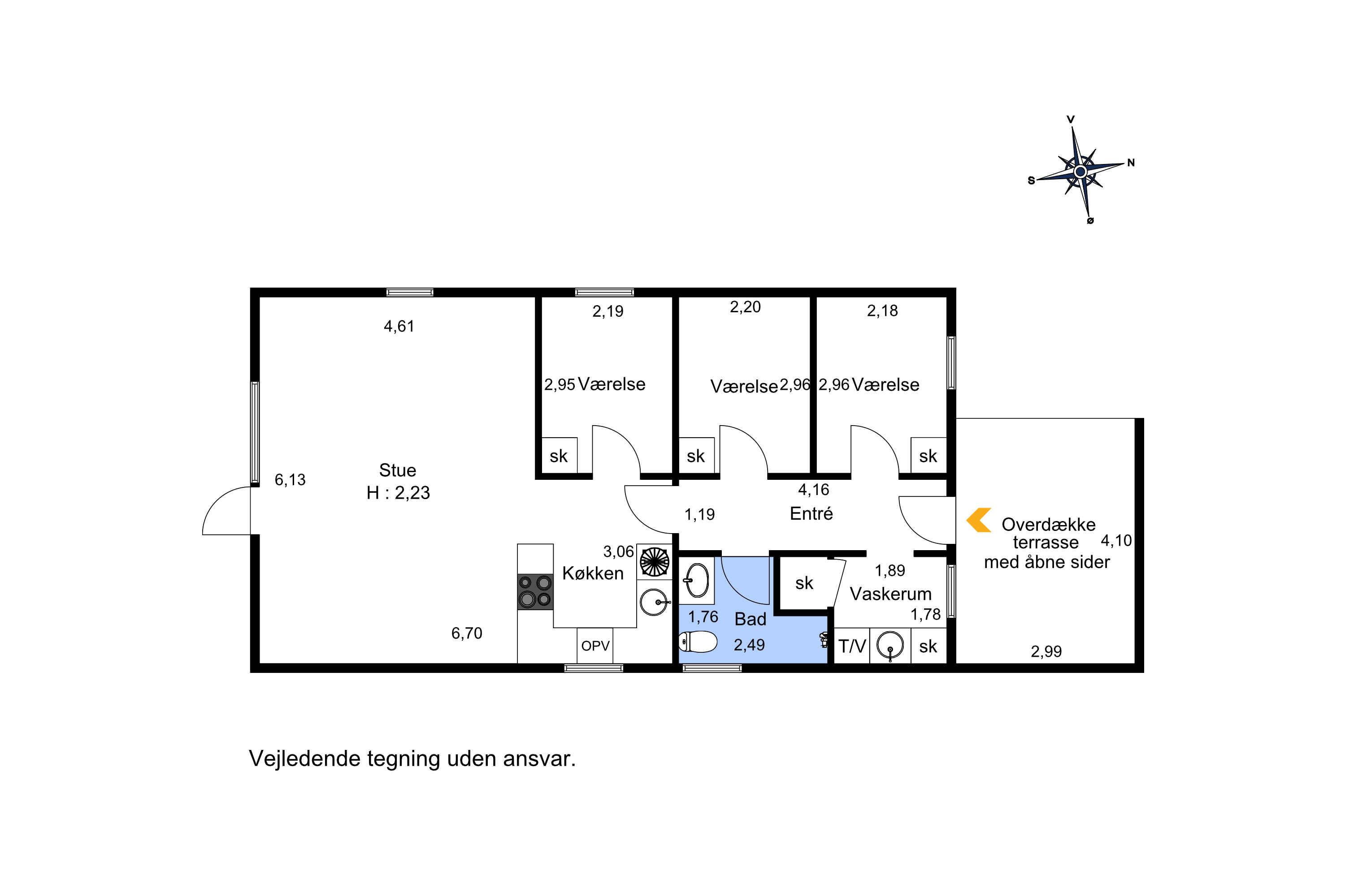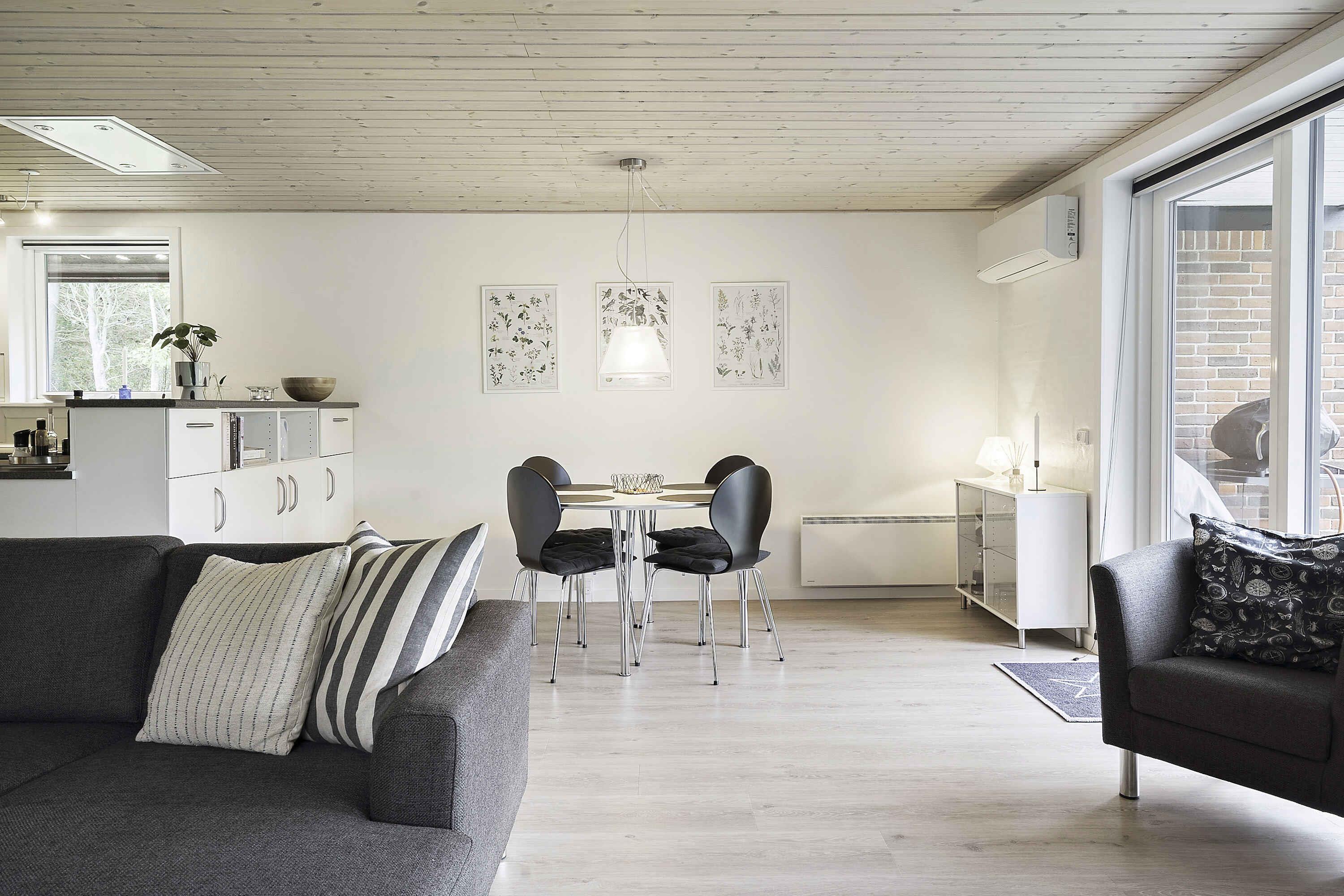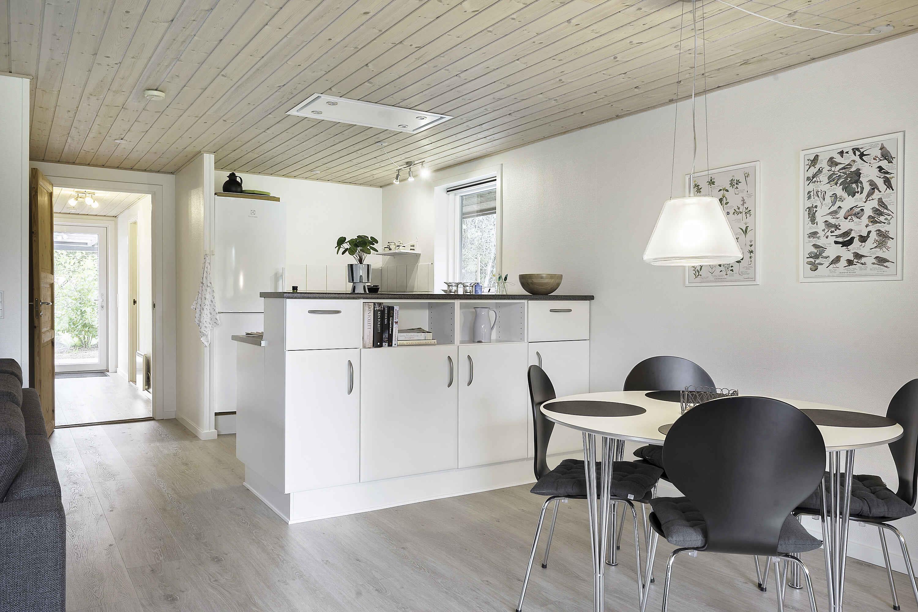 Dieses bezaubernde Ferienhaus ist wie ein versteckter Schatz im Herzen von Ulfborg, Westjütland. Mit seiner unvergleichlichen Lage öffnet das Haus die Tür zu einer Welt fantastischer Erlebnisse. Nur 400 Meter vom Ferienhaus entfernt erstreckt sich ein kinderfreundlicher Strand und ein bezaubernder Jollenhafen am Nissum Fjord lädt Sie zu Abenteuern ein. Wenn Sie ein größeres Stranderlebnis benötigen, erreichen Sie die majestätische Nordsee in nur 10 Autominuten. Gleichzeitig ist dieses Ferienhaus von natürlicher Schönheit umgeben, umgeben von Wäldern und einem Netz von Wanderwegen, die zum Entdecken einladen. Treten Sie ein in die gemütliche Atmosphäre des Ferienhauses, wo drei Zimmer darauf warten, Sie zu umarmen. Zwei Schlafzimmer verfügen über Einzelbetten, das dritte verwöhnt mit einem bequemen Doppelbett – insgesamt Platz für vier Personen. Das Haus bietet mehr als nur Zimmer: eine gut ausgestattete Eingangshalle und einen Hauswirtschaftsraum mit Einrichtungen wie Waschmaschine, Wäschetrockner und Waschbecken. Ein hell gefliestes Badezimmer mit Fußbodenheizung und modernen Armaturen lädt zum Entspannen ein. Die neuen, stilvollen Laminatböden und Fenster aus dem Jahr 2021 vermitteln ein Gefühl von Eleganz. Die Küche präsentiert sich wunderschön mit weißen Armaturen und einer halben Wand, die sie teilweise vom Wohnzimmer trennt, wo ein Holzofen aus dem Jahr 2020 für Wärme und Atmosphäre sorgt. Von hier aus führen Türen auf eine teilweise überdachte Südterrasse, die mit ihrer Schönheit und beruhigenden Aussicht lockt. Dieses Ferienhaus ist nicht nur ein Reiseziel, es ist ein Erlebnis. Eine Gelegenheit, sich zurückzuziehen, Ruhe zu finden und gleichzeitig von allem, was die Gegend zu bieten hat, bereichert zu werden. Egal, ob Sie die malerischen Wanderwege erkunden, das Plätschern der Nordsee spüren oder sich von der lokalen Kultur verführen lassen möchten, dieses Ferienhaus hat den Schlüssel zu allem.