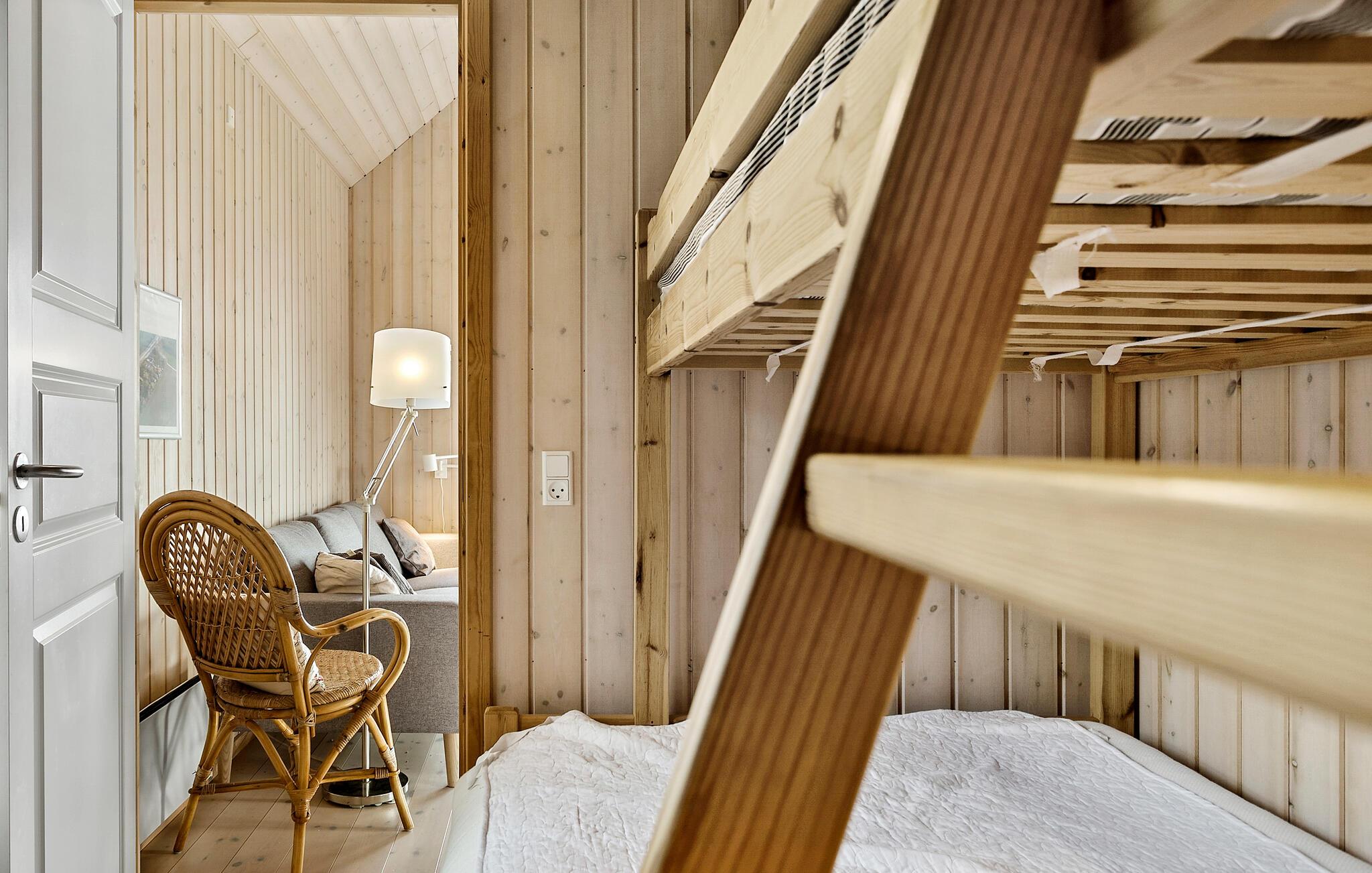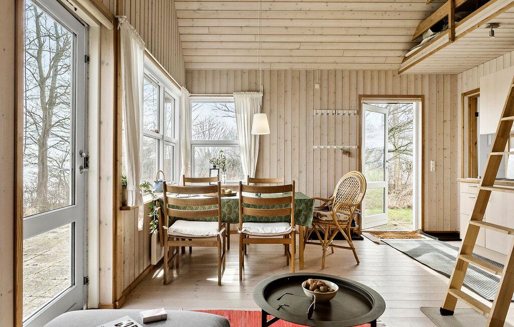 Gemütliches Holzferienhaus mit Panoramablick auf die Ostsee in Idestrup, ideal für erholsame Tage am Wasser.